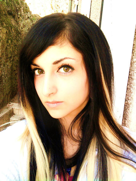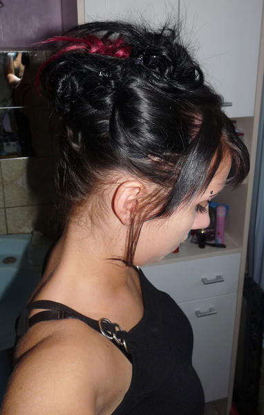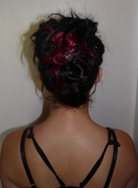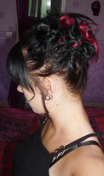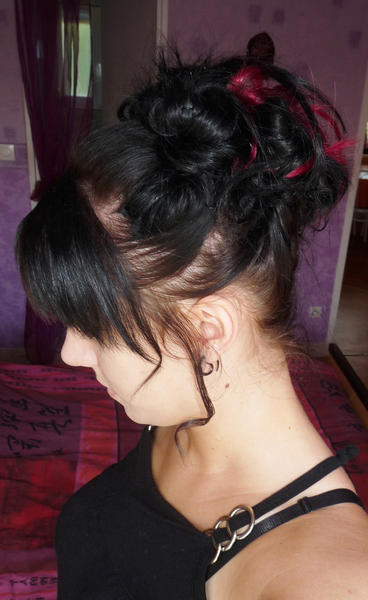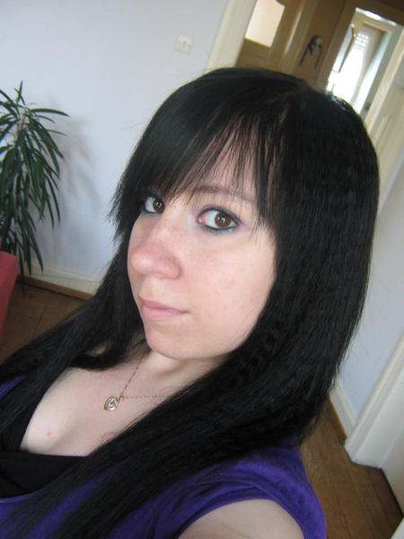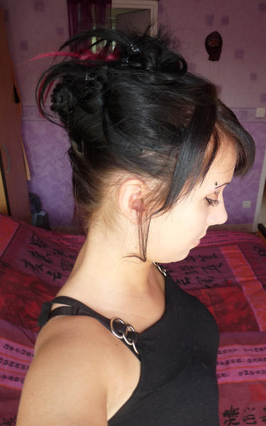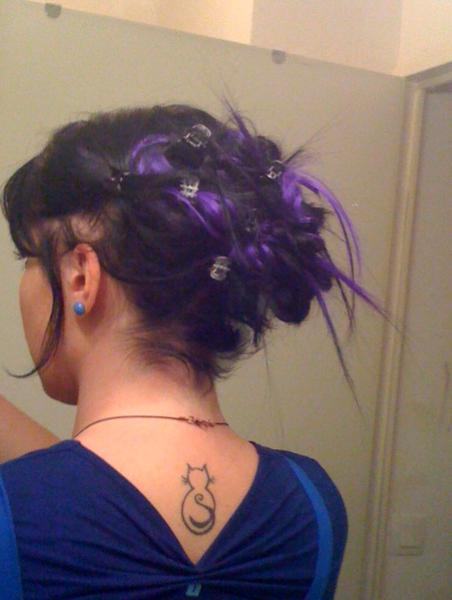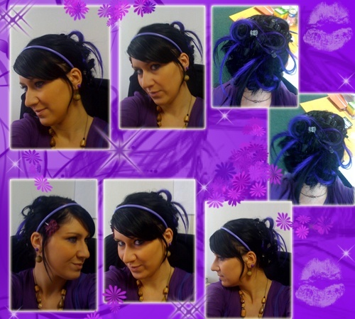 Laura porte un kit d'extensions a clip naturel noir + mèches fantaisies synthétique violette :)