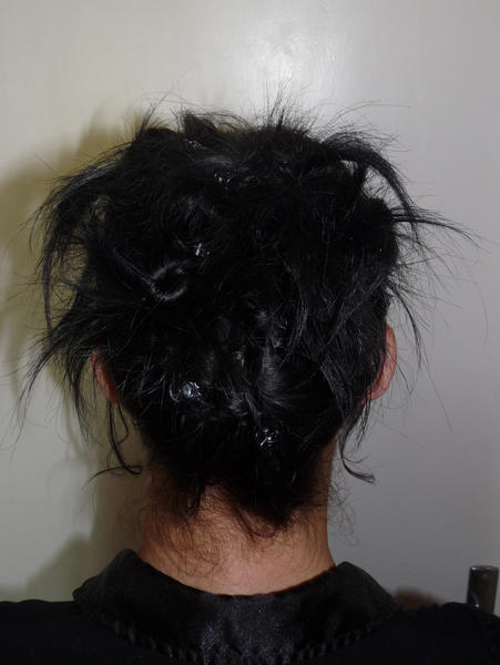 Sur le premier montage Mylène m'a renvoyé des photos aprés plusieurs mois avec un chignon elle aussi :) et sur le deuxième montage Sophie n'a mis que 4 bandes sur 8;elle a un bon volume déjà :)