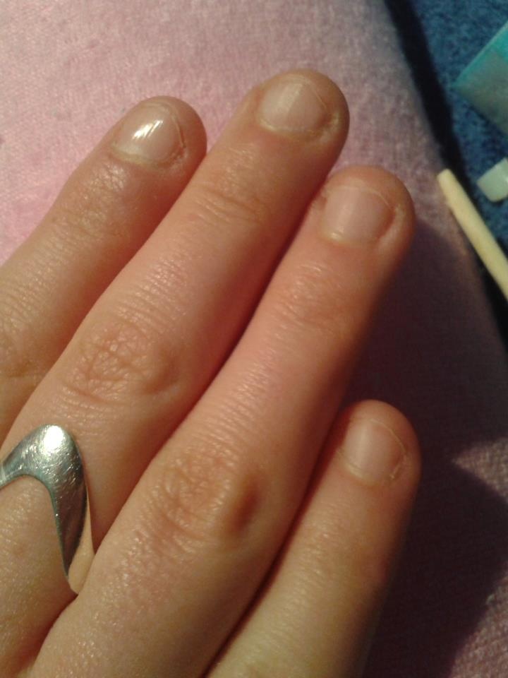 La mise en forme est a revoir car ça fait des bourrelets sur les côtés elle doit prendre sa lime et faire un "C" pr limer les côtés au niveau des cuti