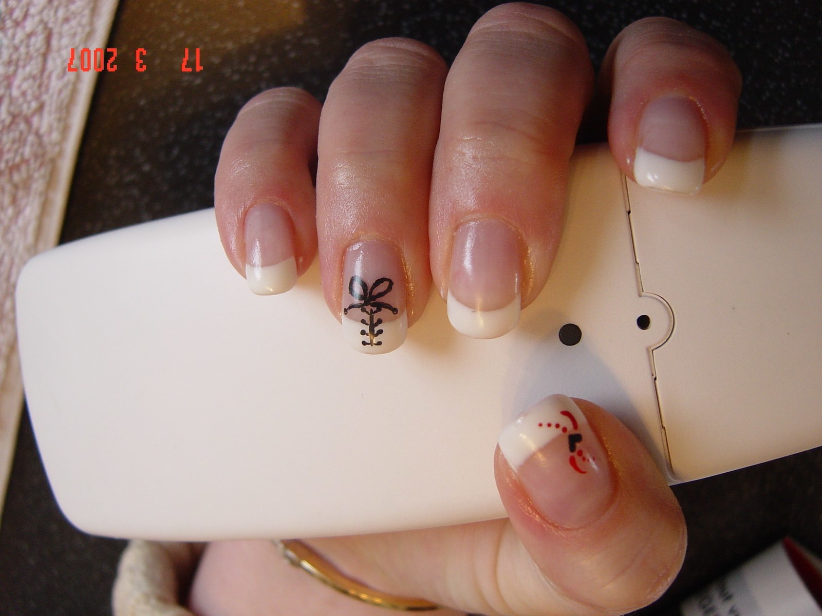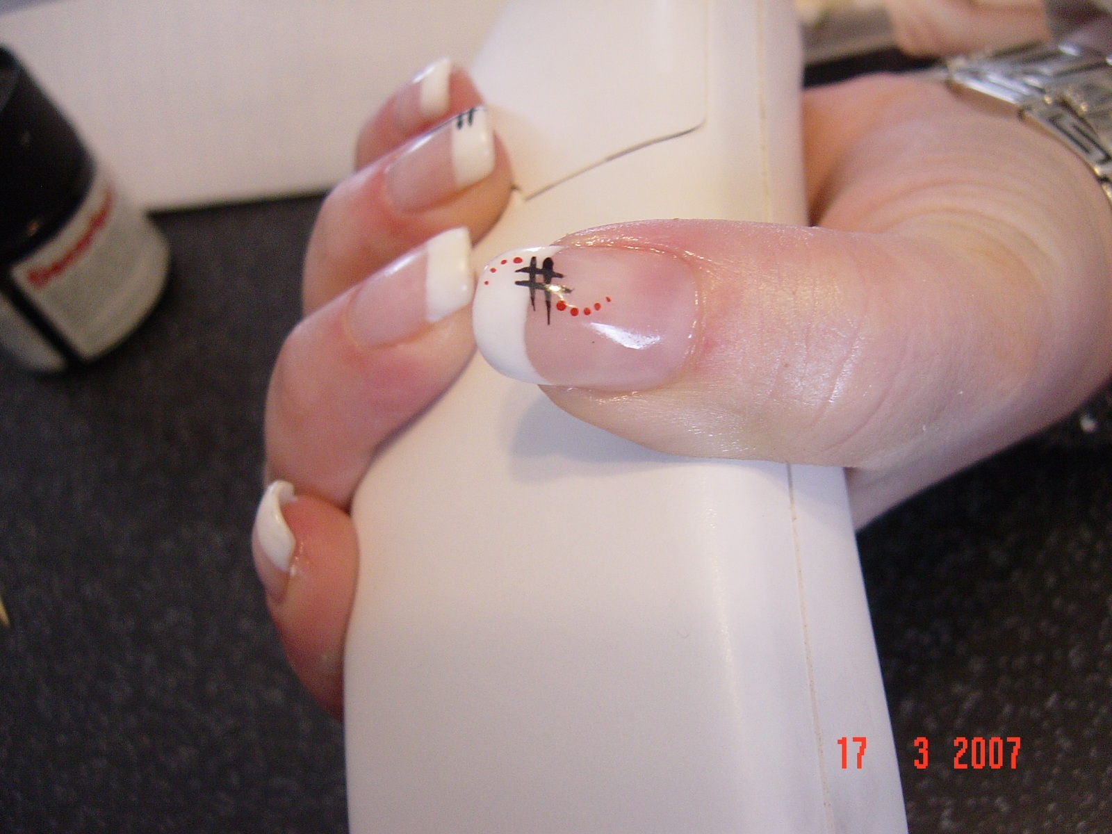 Lacet, nail art peinture,coeur rouge et noir le tout fais à main lever, merci Laetitia........:rosa1: