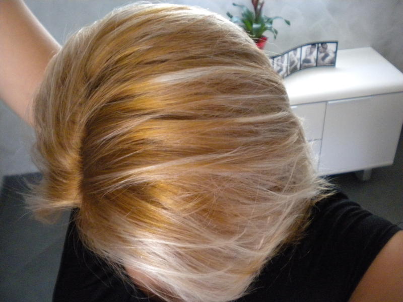 voila cela faisait des annees que je faisais des meches blondes , j'en ai eu marre et je suis allee voir ma coiffeuse pour faire une couleur blonde(au fait j'ai une base chatain clair)
