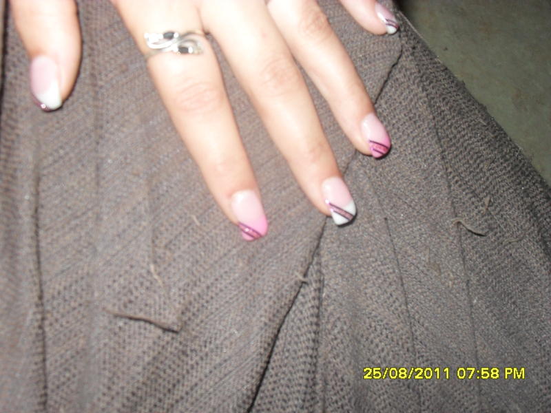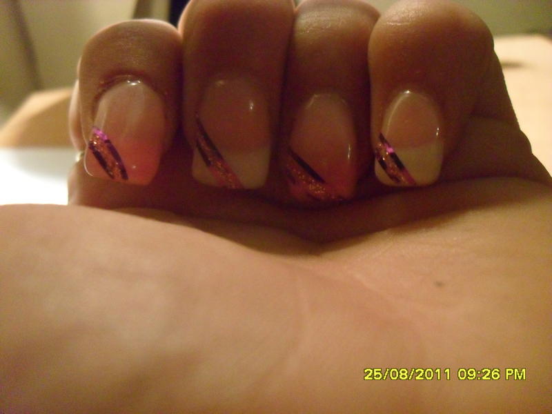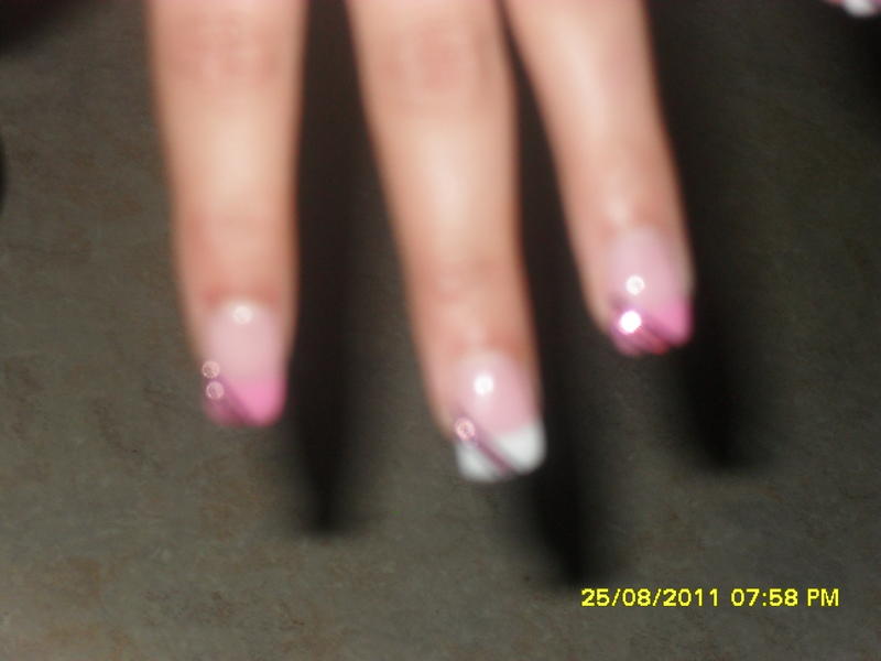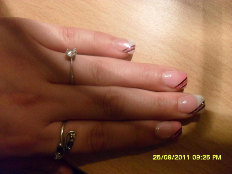 Par contre et ça n'a rien à voir avec ton chablon, ta french est fort épaisse, il y a des papattes de canard et tu es dans les cutis donc, décollements assurés et ton gel n'est pas bien dégradé aux niveau des cutis....