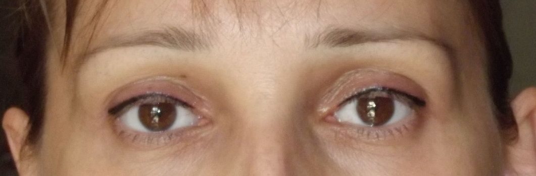 Je ne pense pas que ce soit raté (bien que j'imaginais le supplement "oeil de biche" + marqué que ça), mais seulement beaucoup trop discret, trop fade, pas assez marqué. Il est vrai que l'oeil gauche a un peu larmoyé à la 1ère séance (beaucoup moins à la 2eme, seulement quand la dermo s'approchait du coin interne). Mais paradoxalement c'est l'oeil qui a la couleur qui a le + tenu.