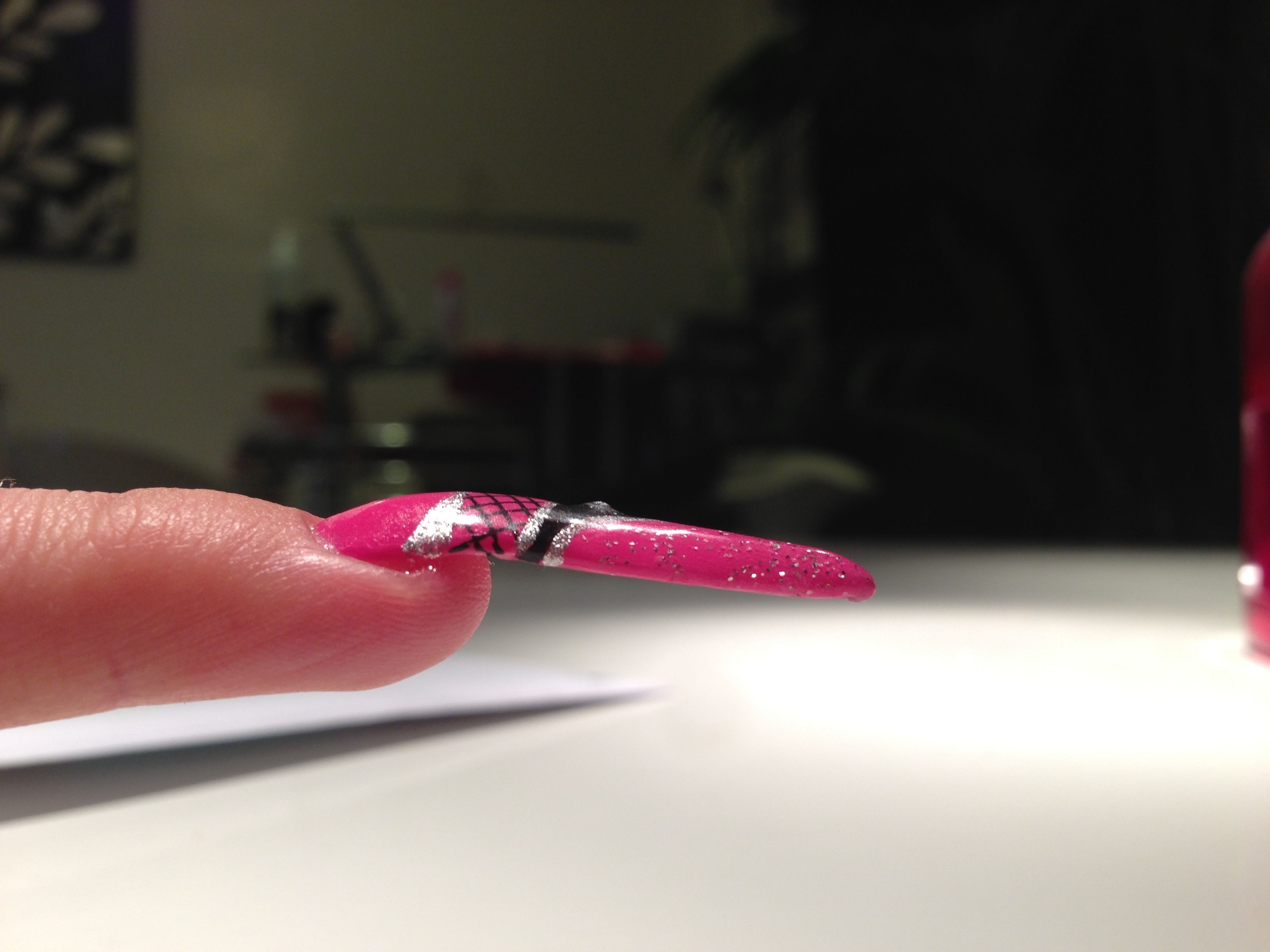 Je le trouve pas assez pointu je pense, un peu tordu ( mais je crois que c'est mon doigt qui est de nature tordu, et trop penché vers le bas ...