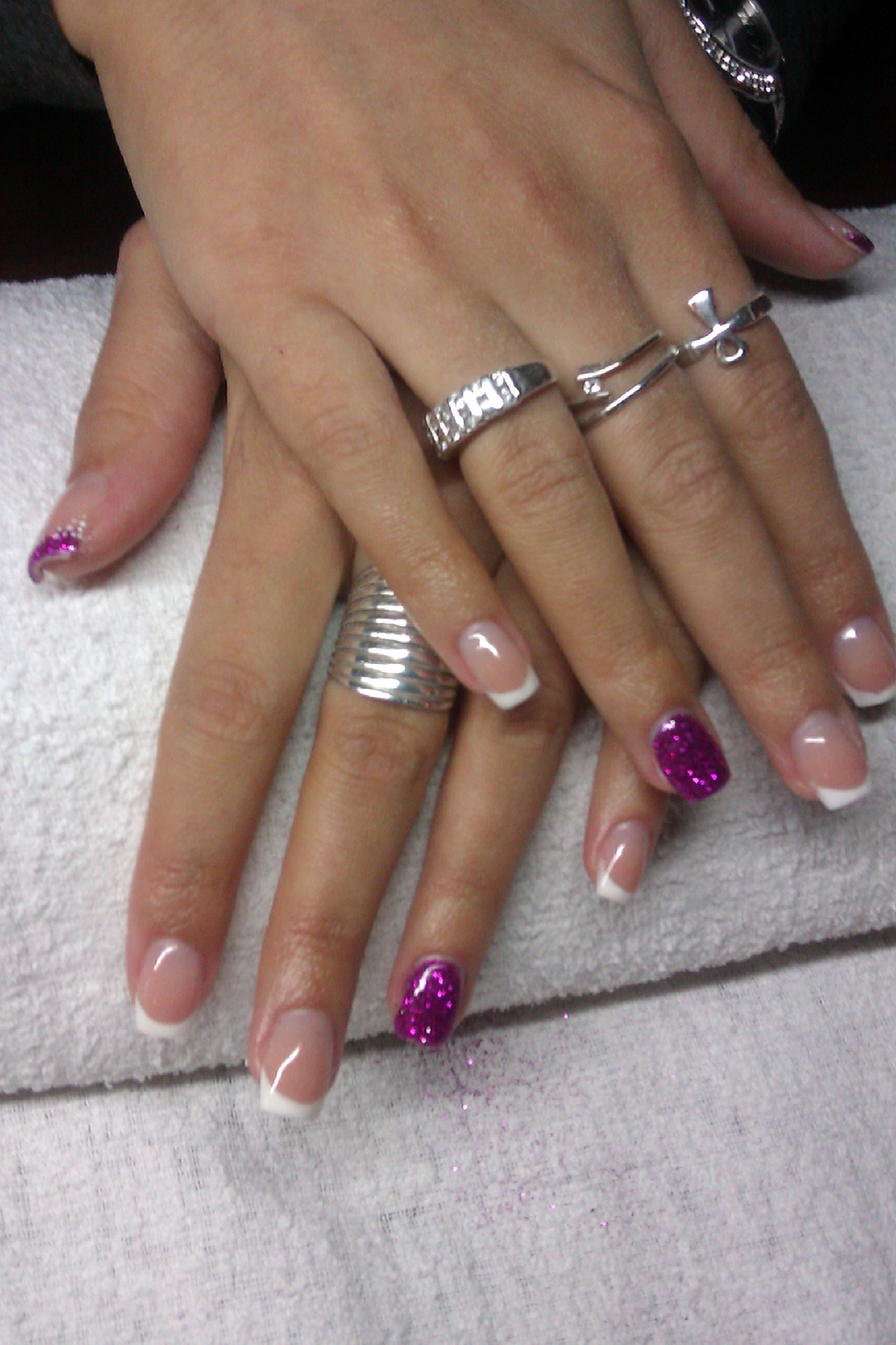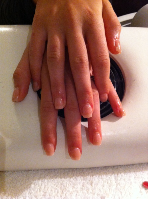 Les 2 premières photos sont les ongles de ma modèle hier avec en gros, les défauts. La dernière photo est celle de la pose sur la modèle durant la formation (sous la surveillance et avec l'aide de Natalya).