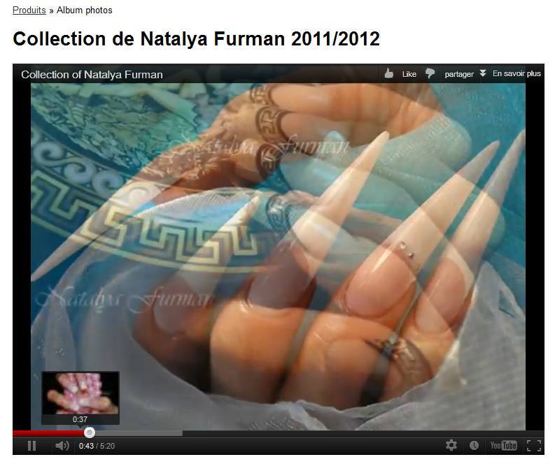 Natalya Furman a dit:Je vous preparé un petit album sous forme de video avec mes creation 2011-2012.. cette video, vous pouvez la trouver sur: www.natalya-furman.com et cliquer sur "Album photos" je n'ai pas la mettre sur facebook a cause de la taille