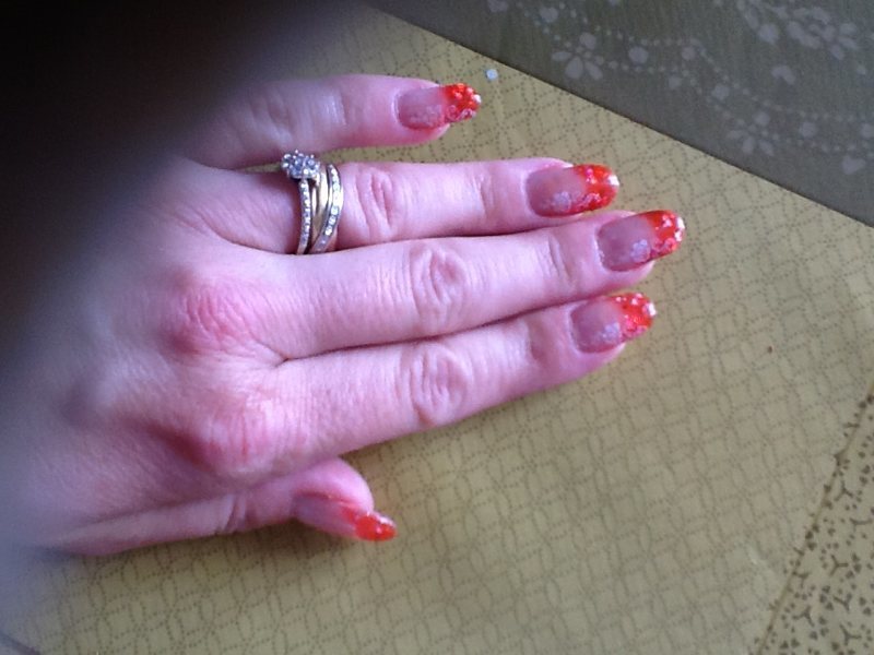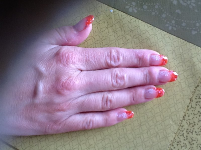 Coucou les filles voici une pose avec le gel orange rouge grosse paillette bien sur de onglesetdecos! Désolée pour la qualité des photos! En vrai ça fait très jolie!