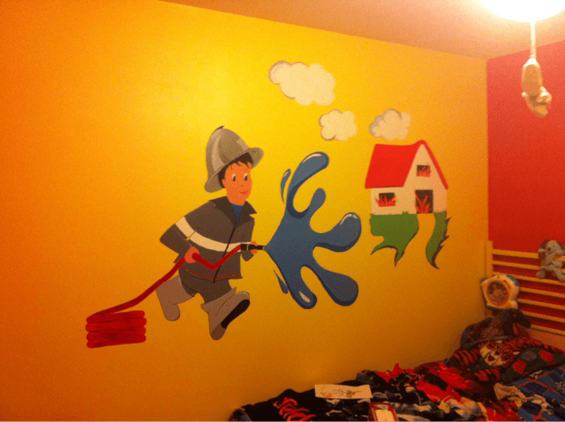 Coucou, suite a quelque question sur le fofo j'ai enfin fini le dessin sur le mur de mon Loulou !!! Le thème est deco pompier, maintenant il ne rest plus qu'à trouver le bon lit !! Vous en penser quoi ???