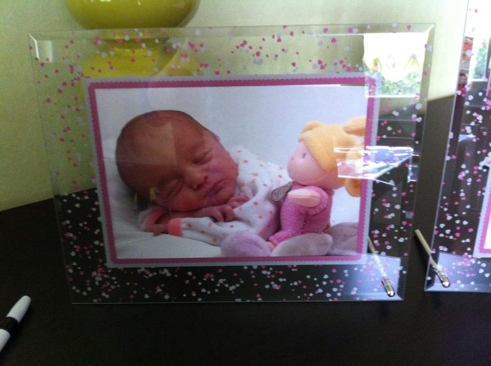 Voilou je vous montre avant le bib ;) Le poster on l'a pas encore on l'aura dans 5 semaines on a demandé de faire agrandir la derniere photo pour faire le poster