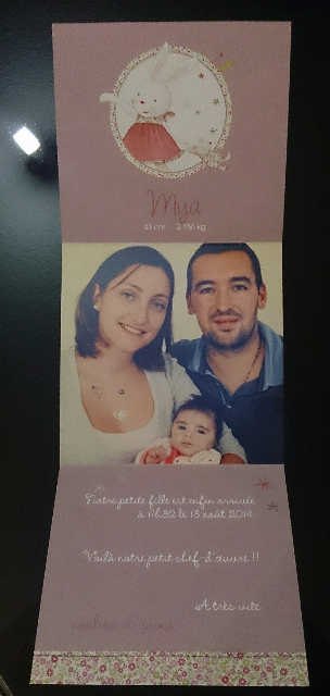 Tu es alle sur faire part creatif? J ai quasi les meme pour haiden mais en bleu sauf que j ai qu une photo que je glisse a l interieur mais j ai pas ete ravie car la photo faite par un pro ressort rouge je sais pas comment tu les trouve toi?