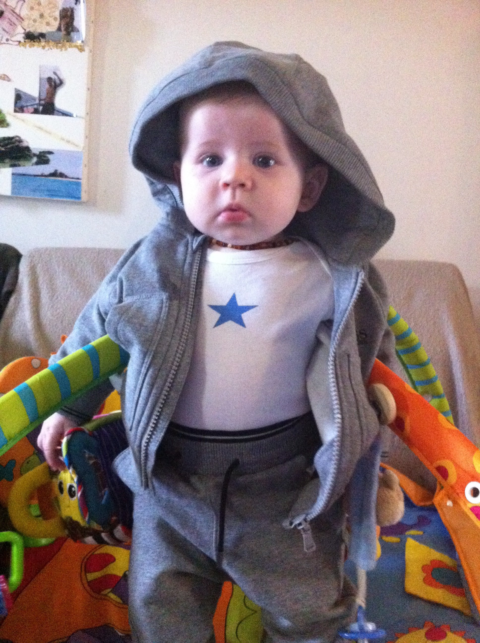 Voila mon fils bientot 5 mois je suis passee au 6 mois en fringue !