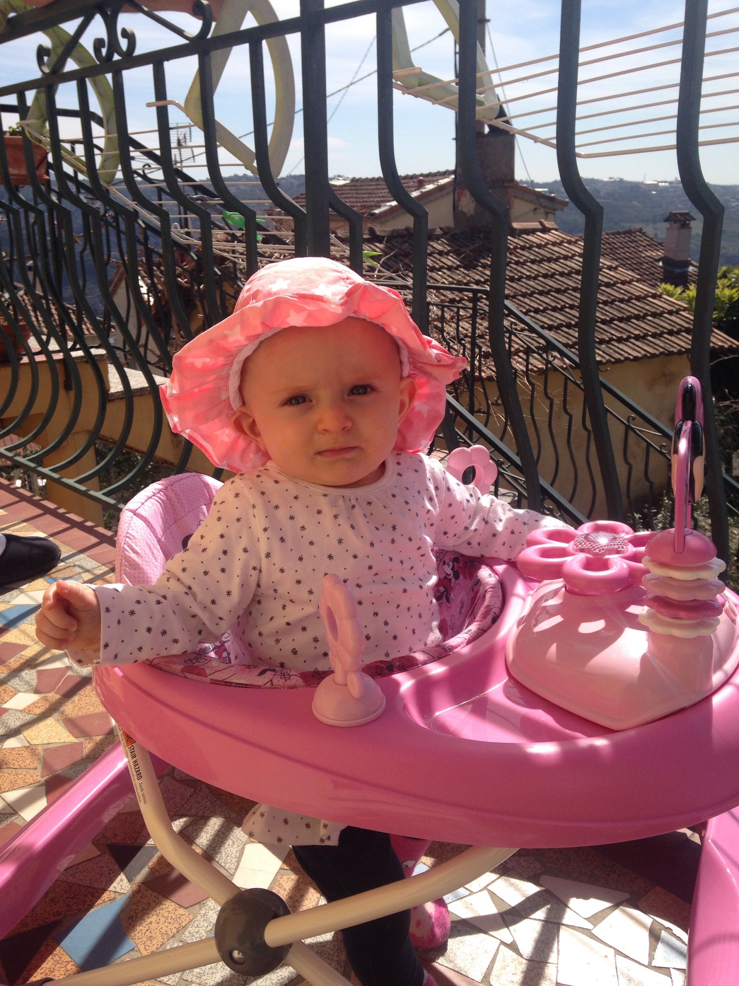 Ici poupinette adore etre dehors meme si je la gronde a chaque fois qu'elle enleve son chapeau