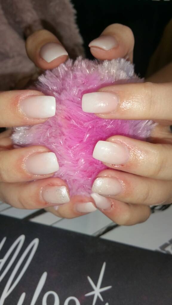 2: french blanche( snow white) casi moitié ongle et fondre avec éponge seulement le haut de l'ongle.