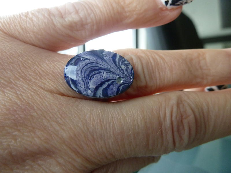 Sympa tes nouvelles bagues ! J'ai une préférence pour la rouge et la boucle d'oreille est très belle ! T'es une pro du water marble ! =)