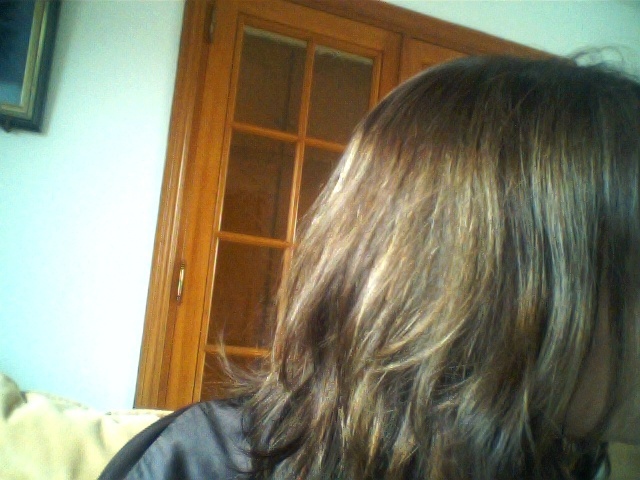 je ne suis pas comme mon avatar QUI date , j'ai les cheveux bien plus clairs (ancien balayage blond et colo chocolat dégorgé ce qui donne un mi temps de chatain ac des éclaircis dorée )