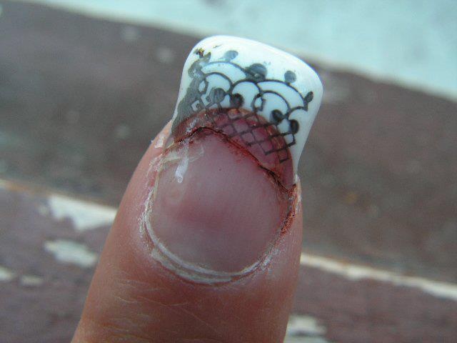 voilà ce que ça peut donner un ongle mal "architecturé" avec du gel en bout pour la déco