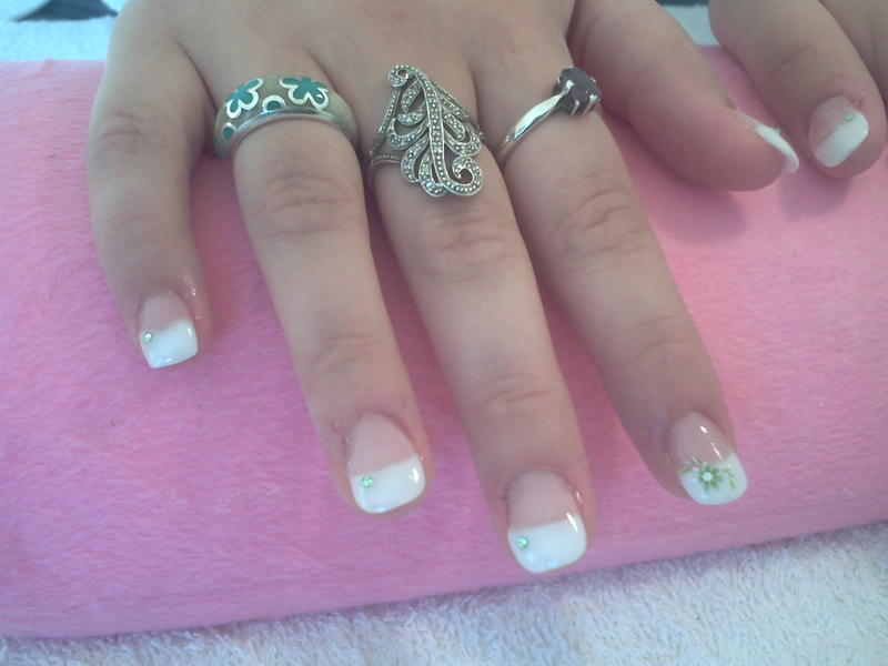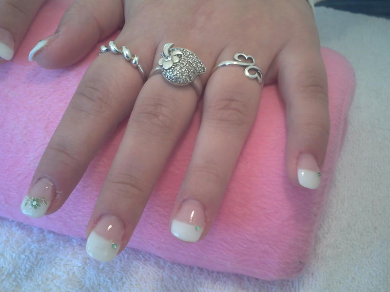 alors: tout d'abord j'ai préparé l'ongle (desinfection des mains, pousser les cuticules, limer avec bloc blanc puis cleaner) ensuite j'ai appliqué du primer au stylo puis pose des chablons. Ensuite j'ai fais mis du gel de gabarit sur le bord libre catalyser puis gel couvrant sur tout l'ongle y compris sur le gel gabarit catalyser. Ensuite j'ai degraissé au cleaner puis retiré mes chablons. J'ai fais ensuite ma french catalyser puis gel de construction plus epais sur la zone de stress... catalyser puis limer et finir au bloc blanc ensuite strass déco et gel de finition. J'ai appliqué un vernis transparent et voilà...