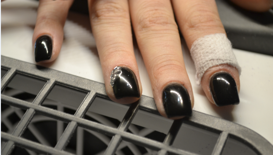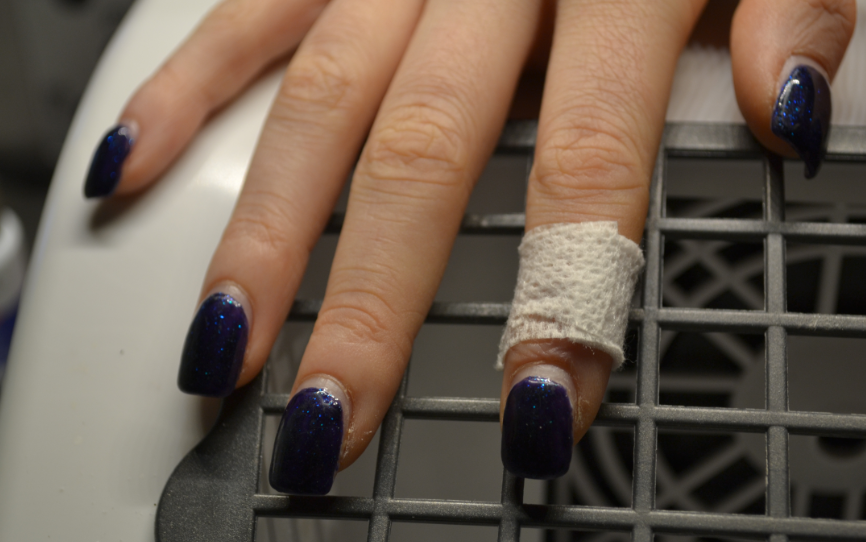 Je n'avais pas d'embout de ponceuse spécialement adapté et je n'ai pas su tout poncer en dessous comme je l'aurais voulu : Le long de son vrai ongle, c'était plus épais car je n'arrivais pas à aller plus loin. Si vous avez des embouts à me conseiller, je suis preneuse !