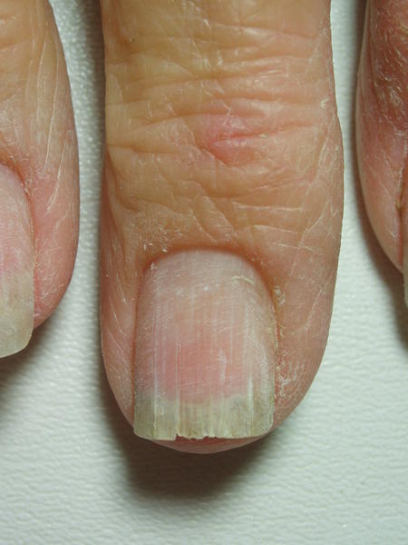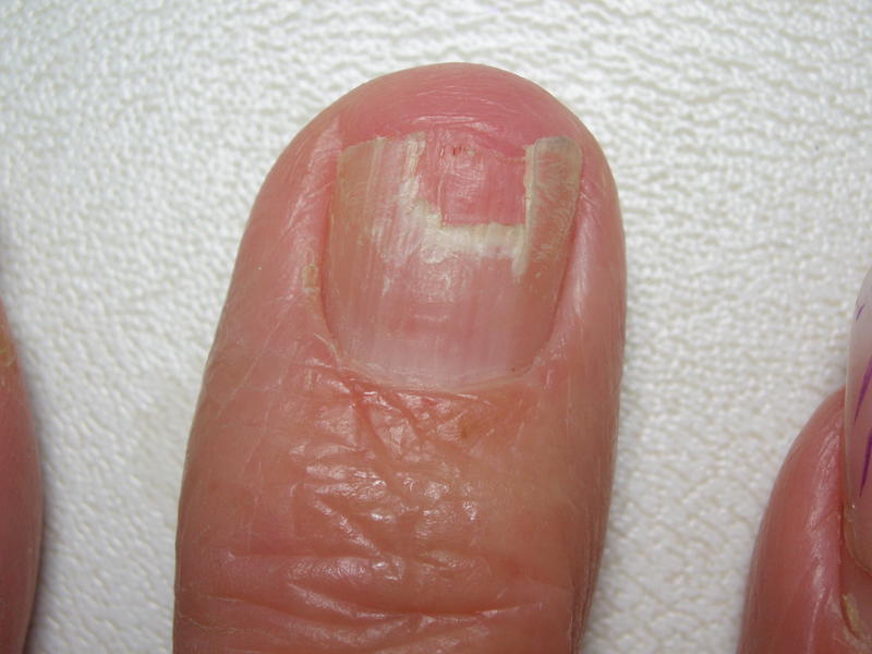 Voilà j'ai besoin d'un petit renseignement... Ma maman a depuis de nombreuses années son majeur qui se fissure verticalement dès qu'il pousse... La première photo vous le montre mal,j'avais pas réussi à faire ressortir les fissures, mais il est fendu à 3 endroits...