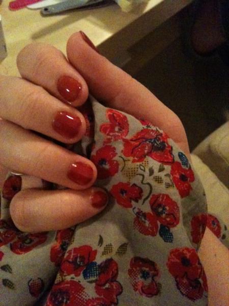Ensuite j'ai refait une pose, en rouge encore! Et avec ta technique de catalyser 10sec après chaque ongle, ça se rétracte beaucoup moins et j'ai bien réussi a border les ongles, donc un grand merci ça a été la révélation!! LOL