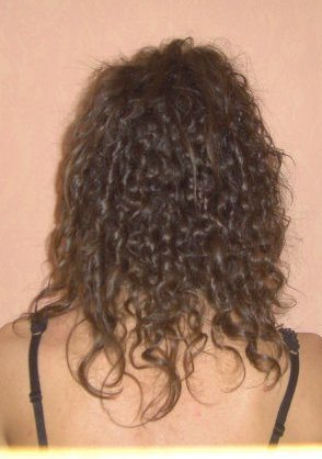 La on voit bien que ca frise super serré (donc difficile à détendre avec des plaques, donc passer plusieurs fois sur les mèches donc assèchement) et les restes de mon défrisage en bas, avec les queues de rat bizarres qui frises moins.