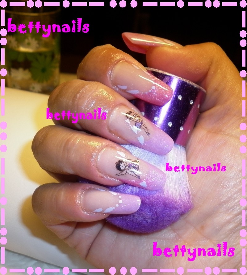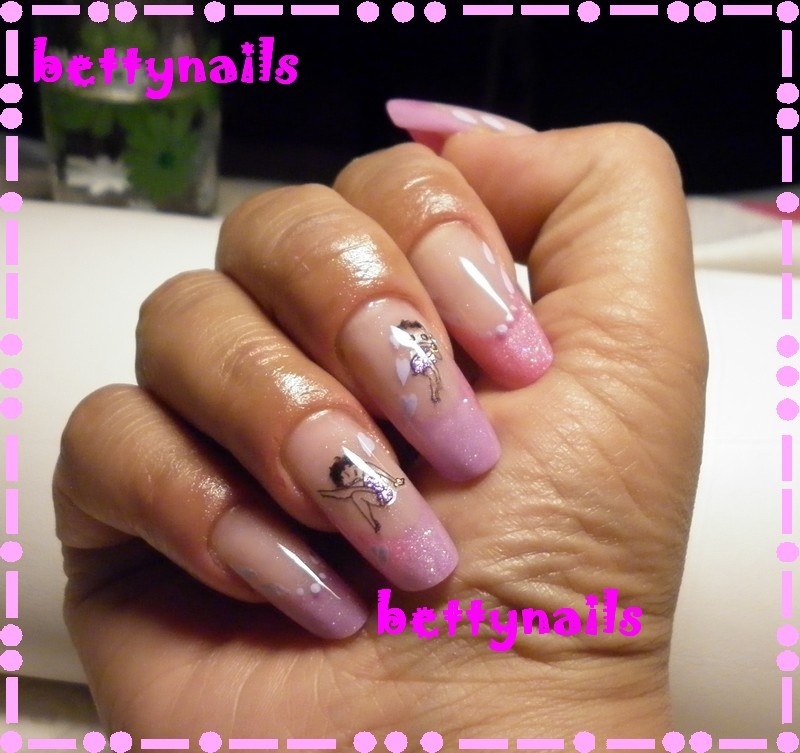 ayant reçu un joli petit cadeau de ma véro (flynails) de superbes stickers betty boop, je me devais de les essayer et comme ma mauvaise main était à refaire c'était l'occaz ;)