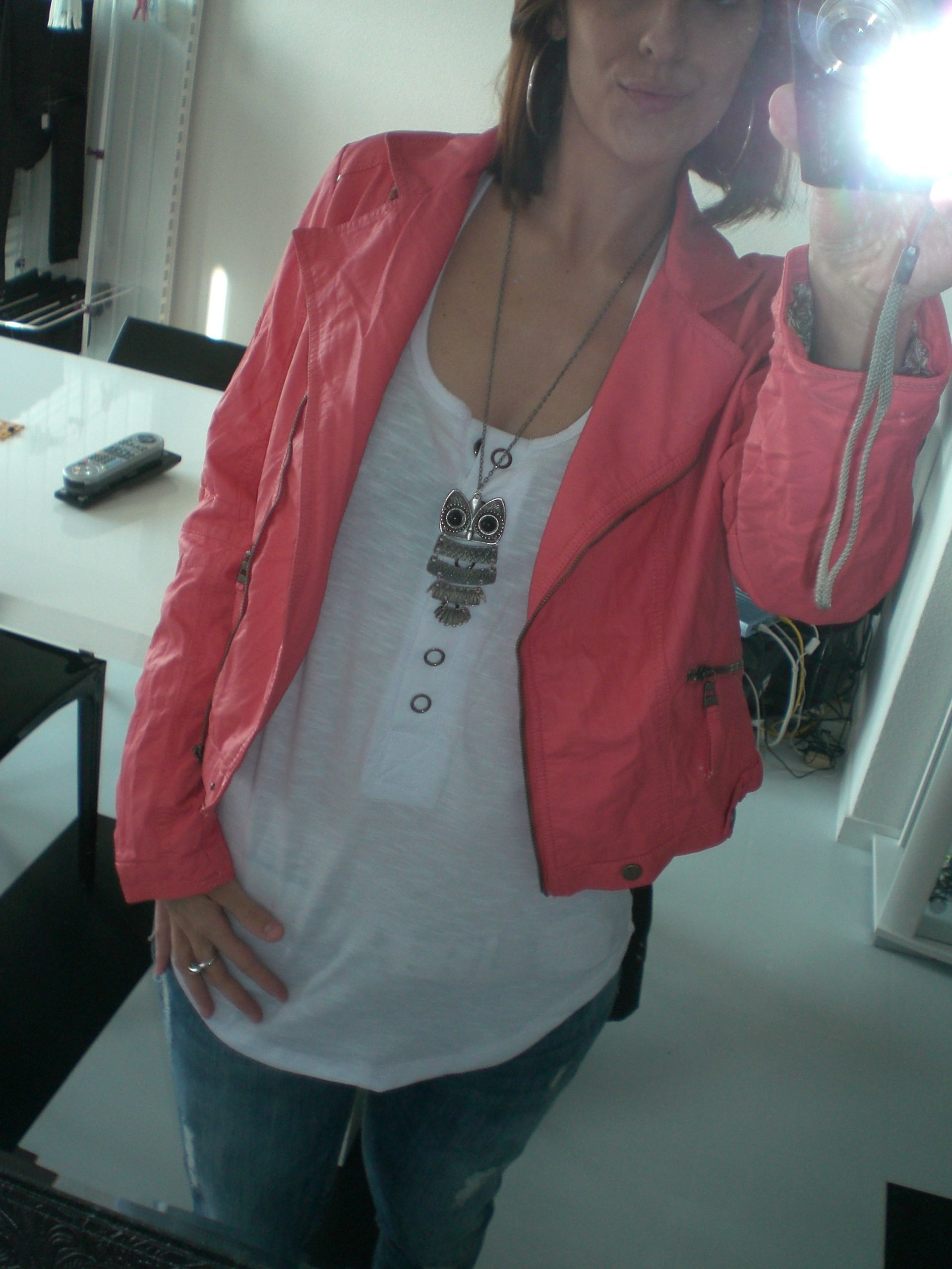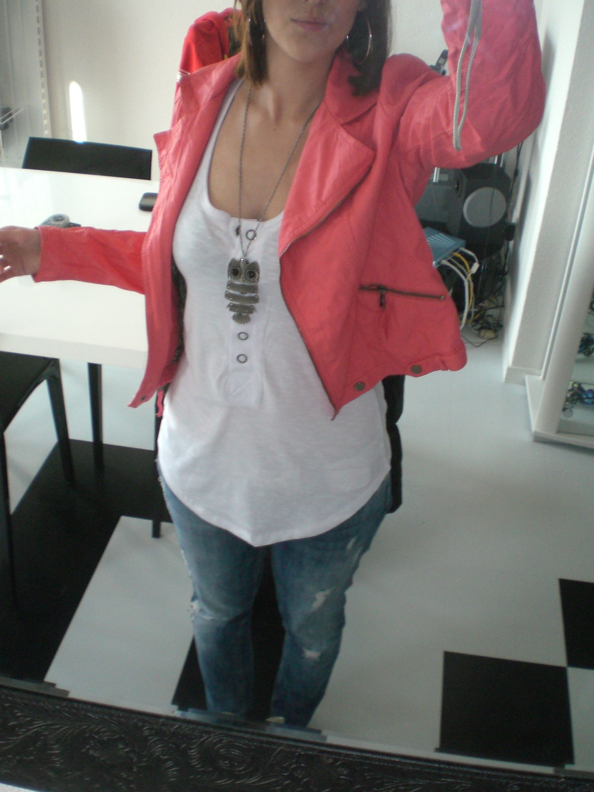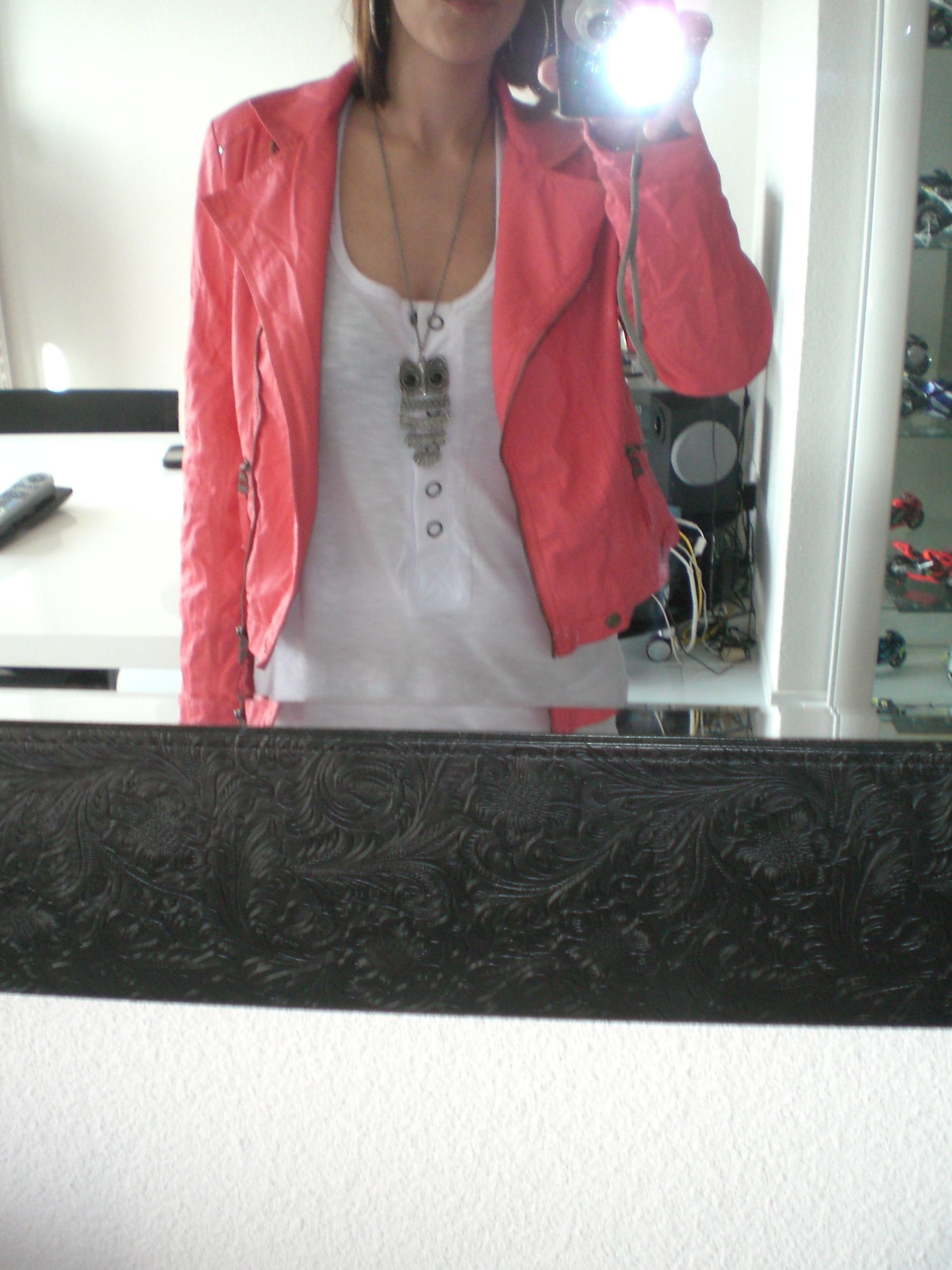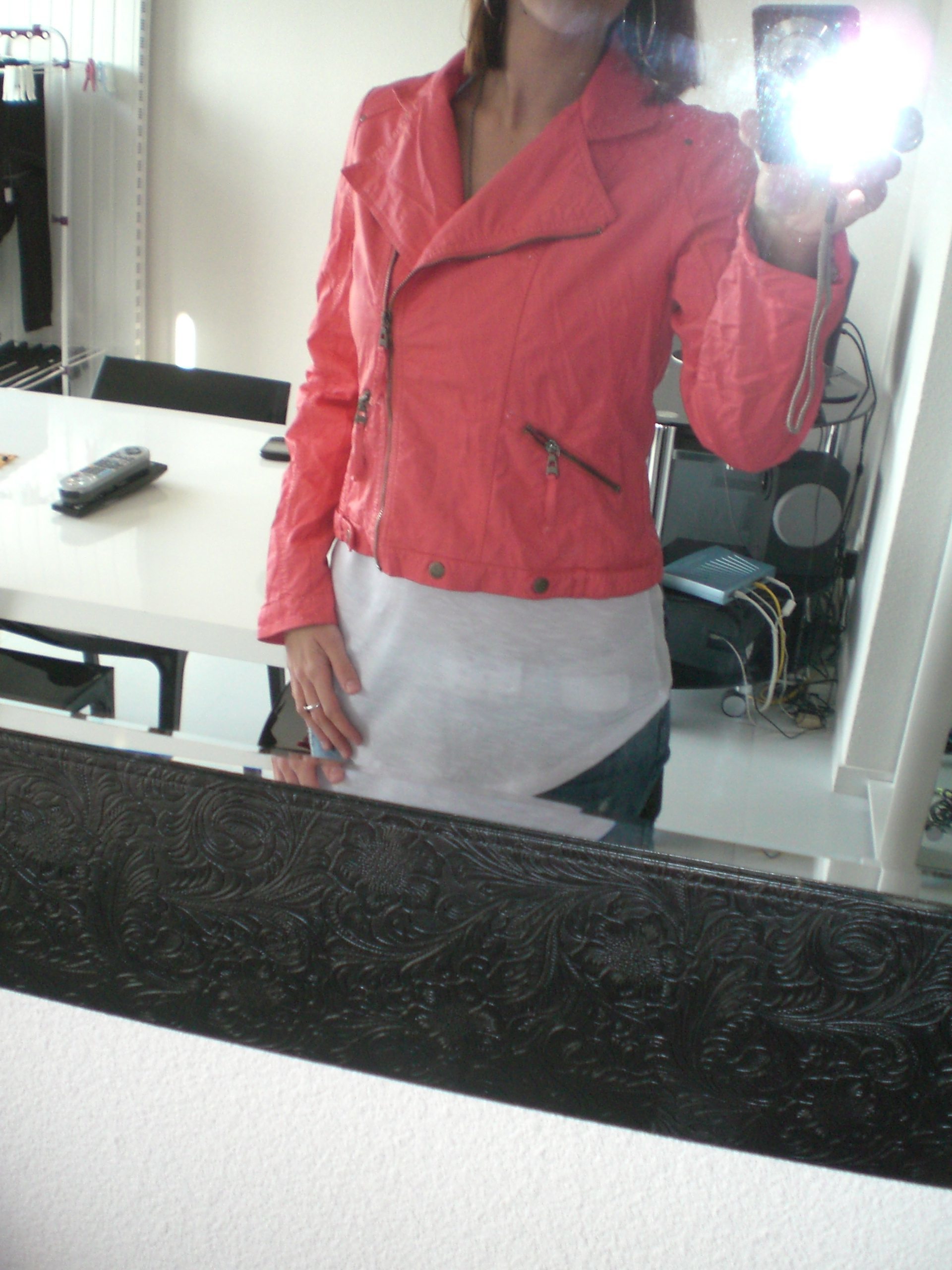 Merci les filles pour vos avis :) J'ai pas trop trouvé de truc d'été .Il faut que j'aille faire d'autre magasins ... En attendant , j'ai craqué sur un tee shirt blanc et un perfecto .... J'attends vos avis :)