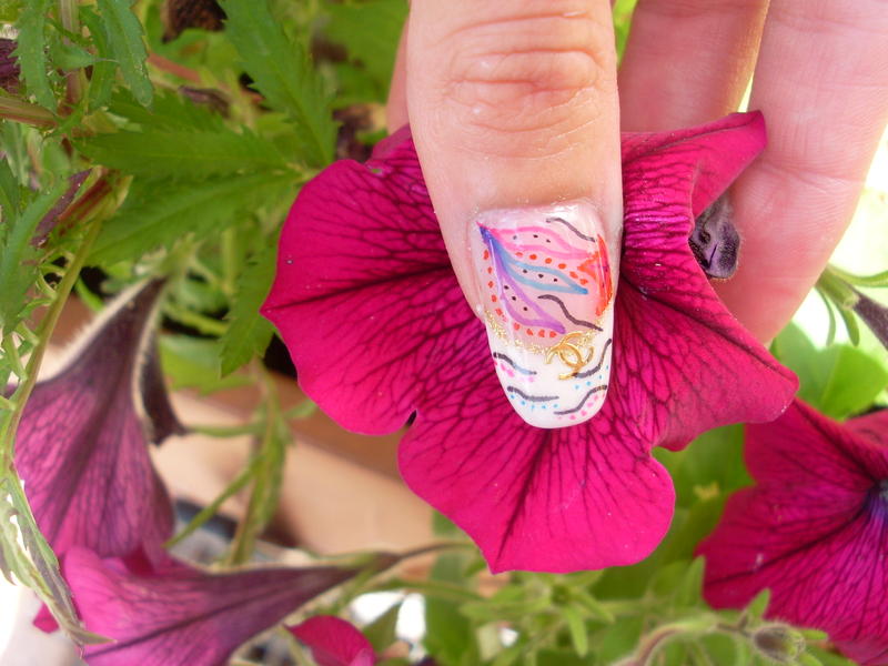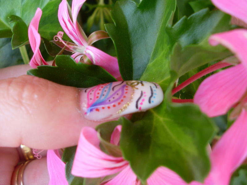 Sinon, voila les filles, j'ai fait un pouce à l'instant pour que vous puissiez juger par vous même. J'ai mis un gel de finition par dessus, comme d'hab sur mes décos (pas super la déco, mais c'est juste pour vous montrer les traits).