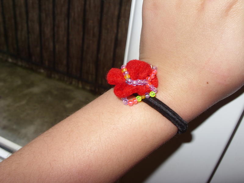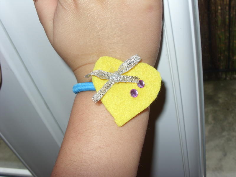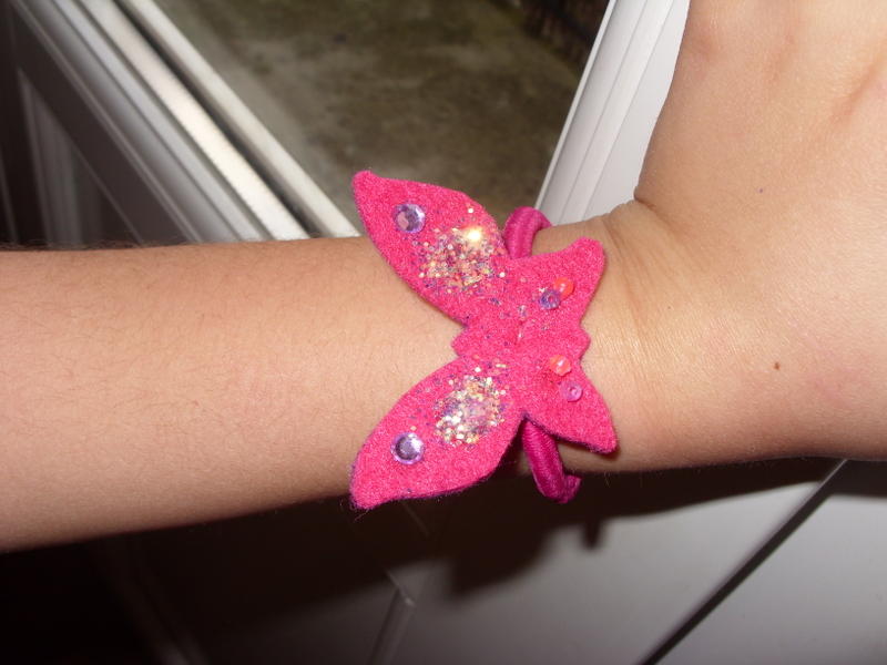 ben nous on fait des bracelets donc comme ceci , ou des papillons ou decoration de verre, enfin pleisn de truc comme ca !!