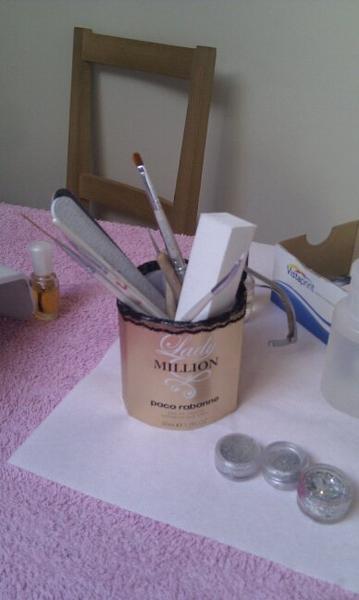Je voulais vous faire partager mon petit bricolage, le mieux aurait été dans faire deux un pour les limes un autre pour pinceaux..Pour l'instant j'en ai fait qu'un.
