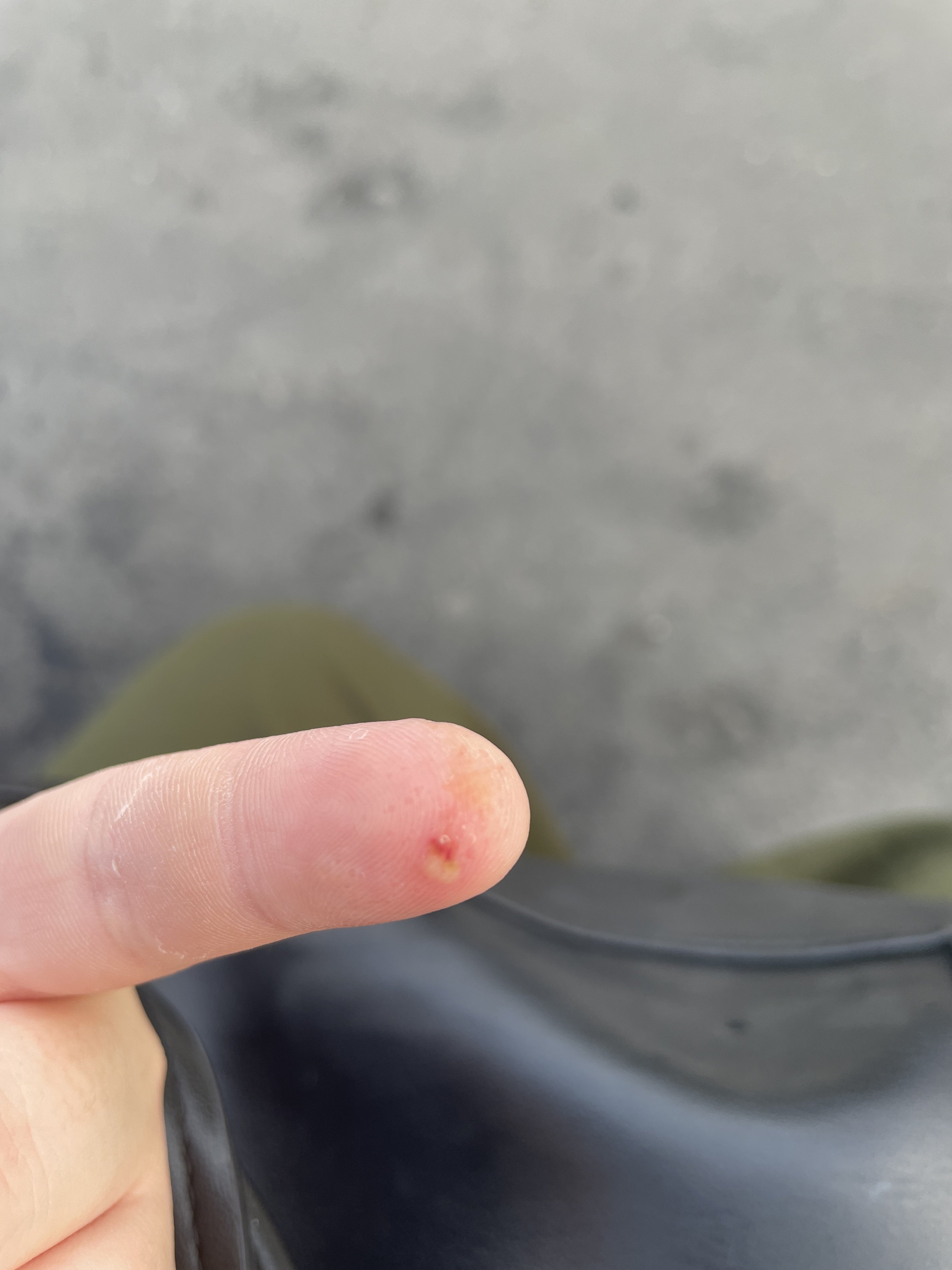 Cependant je me suis réveiller et j’avais des petites bulles en haut de mon doigt, et là un petit peu de pu.