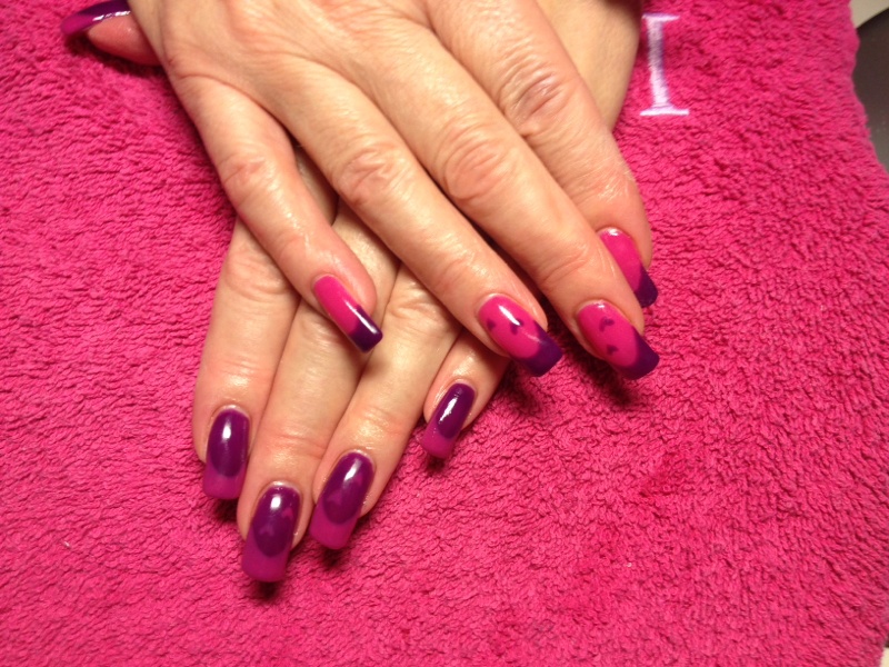 Les 3 photos s'est les ongles crochus de ma maman ! Y a des pattes de canard surtout la dernière avec le rose en French et je préfère le violet en French mais ma maman voulait faire deux côtés différents.