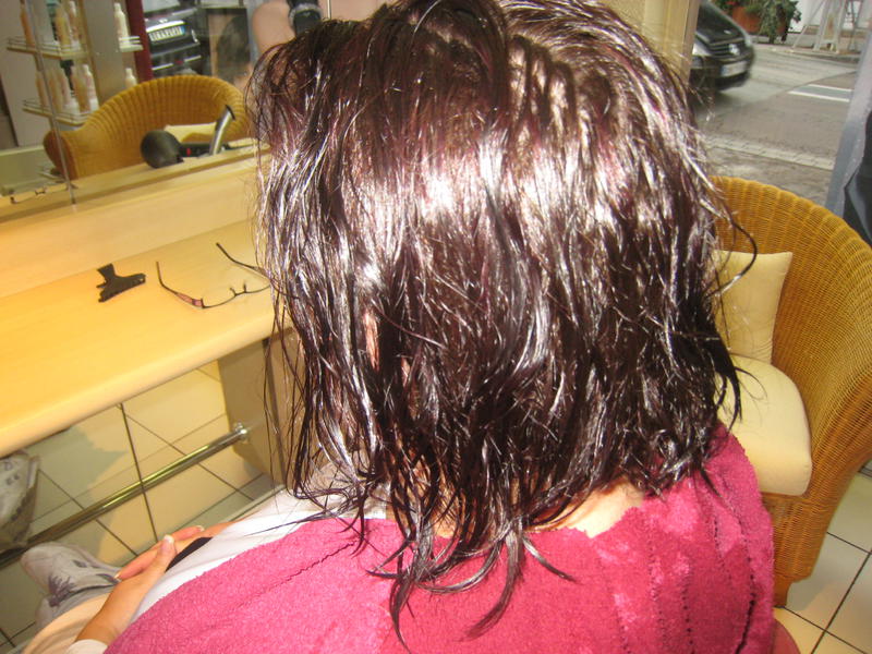 - 1ère photo, mes cheveux séchés au sèche cheveux 3 jours avant le lissage, il y a beaucoup de volume, des frisottis, un peu d'ondulations, ils étaient horribles