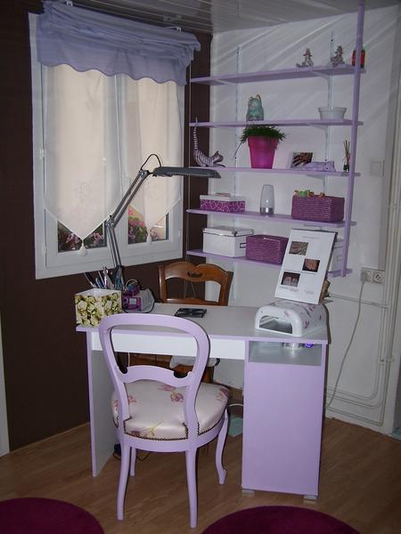 Là voici enfin. Petit bureau de chez Fly (39 euros), Lampe Ikéa (15 euros), aspirateur de table que mon petit homme m'a incorporé dans le bureau. Les couleurs je ne sais pas si on voit bien chocolat pour les murs et déco parme.