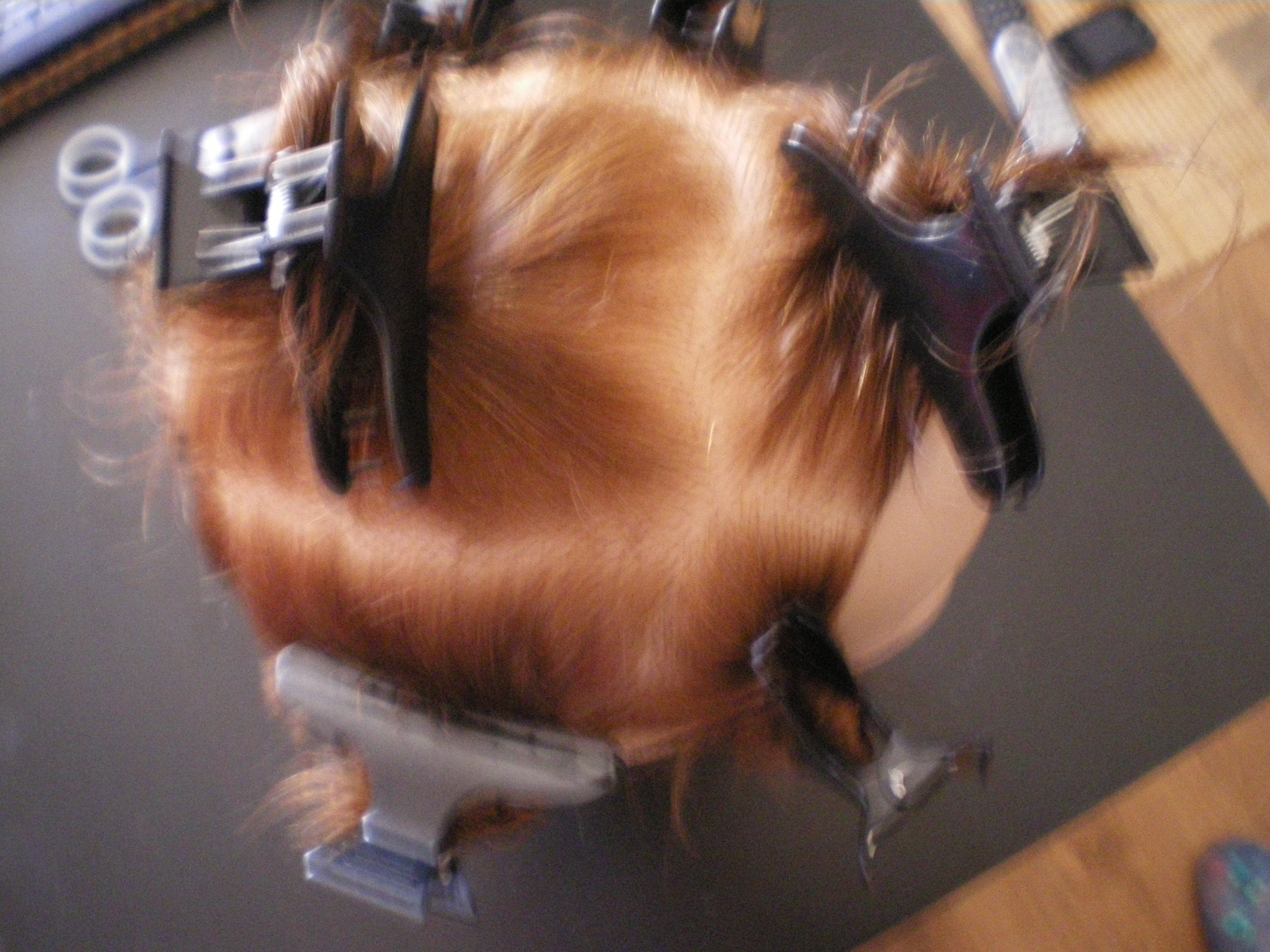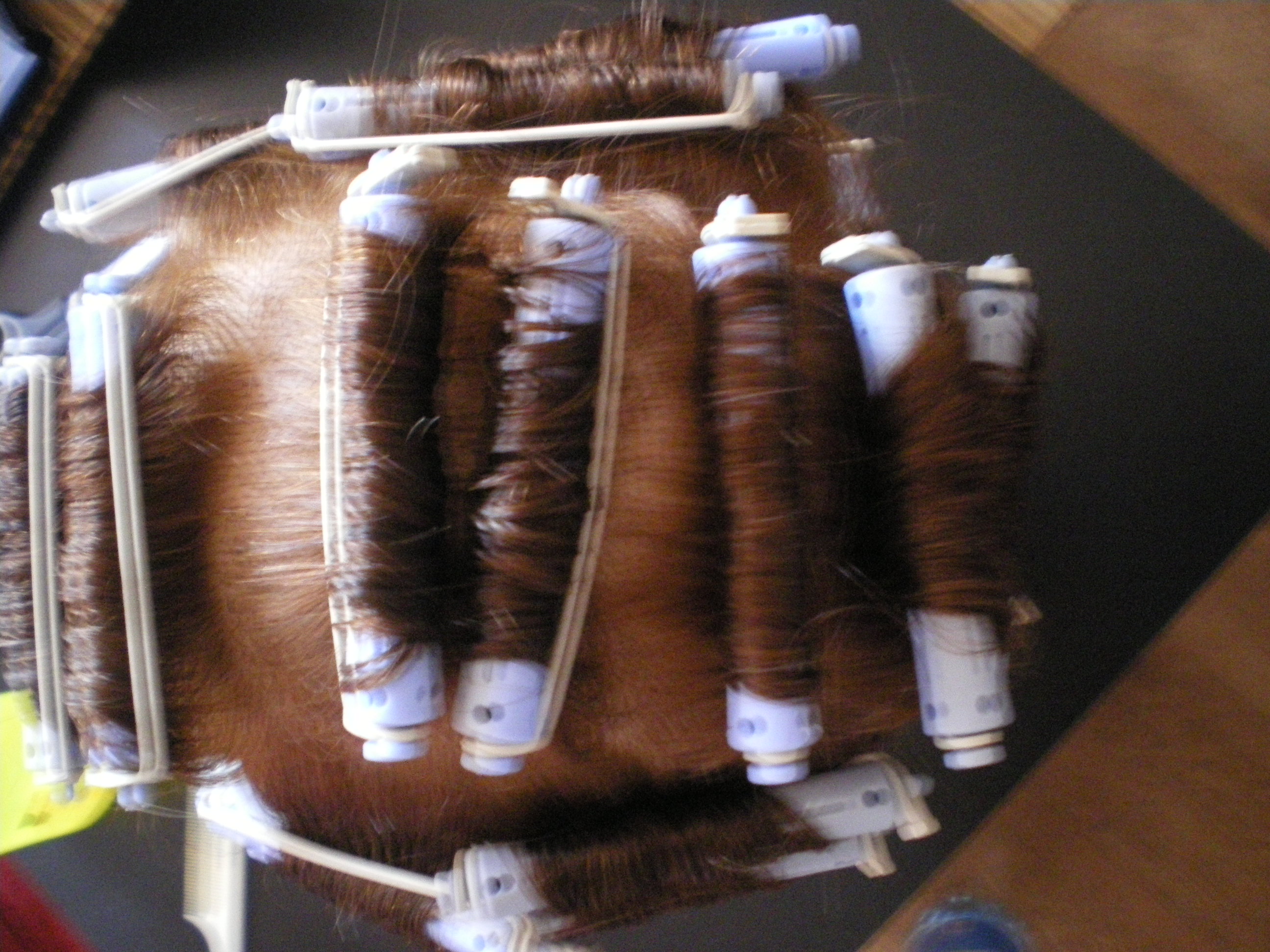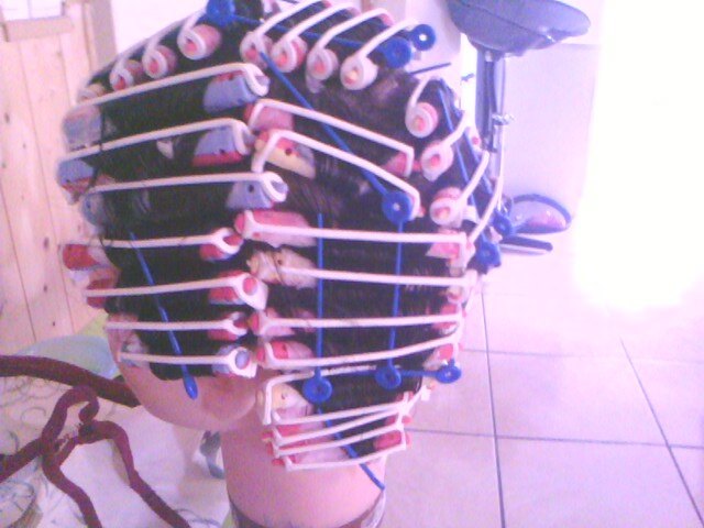 coucou les filles j ai trop galéré ce matin pour la perm ,j ai eu du mal avec les papier les bigoudie ,les cheveux de ma poupé etait tout dégradé, mon petit dernier arretter pas de crier parsque je m ocupais pas de lui j ai mie 2 heure a finir, mais em mm temp j ai donner le sein au petit.