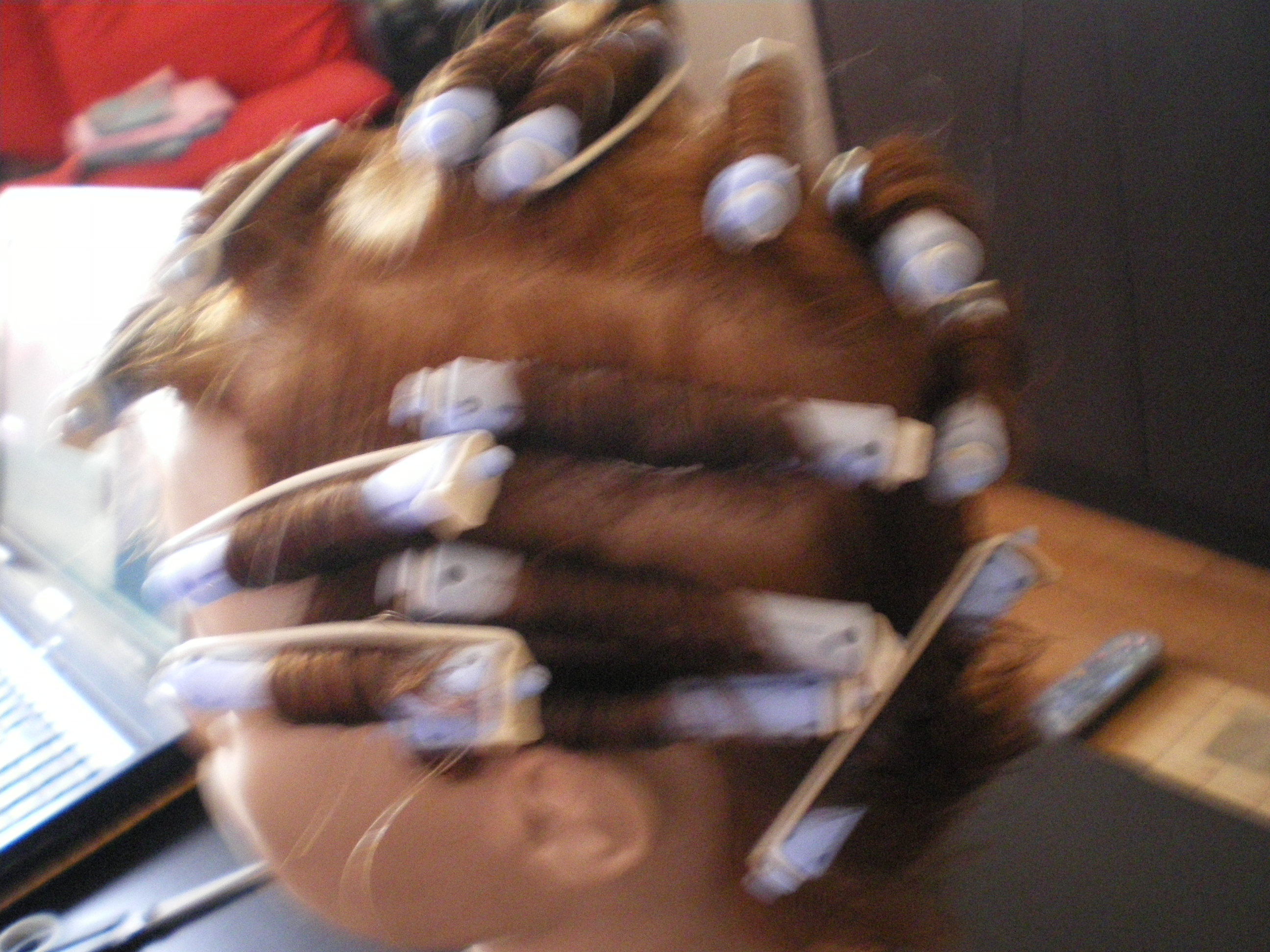anna tes séparations sont bien faite parcontre quand tu enroule tu prends des méches moins grosse tu arrivera mieux a enroulé tu prends 1 cm ou 2 cm d'epaisseur et tu enroule tu vera tu arrivera mieux