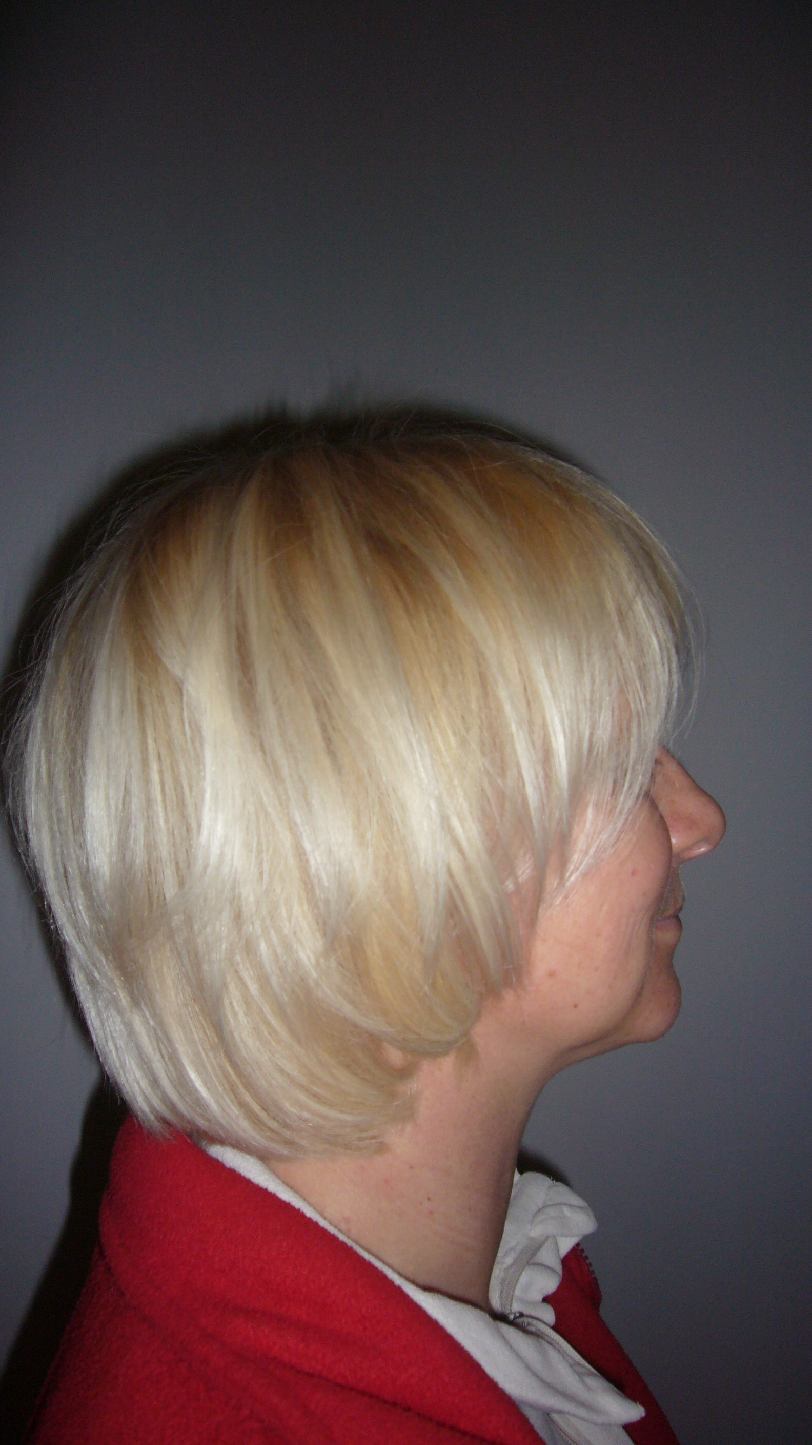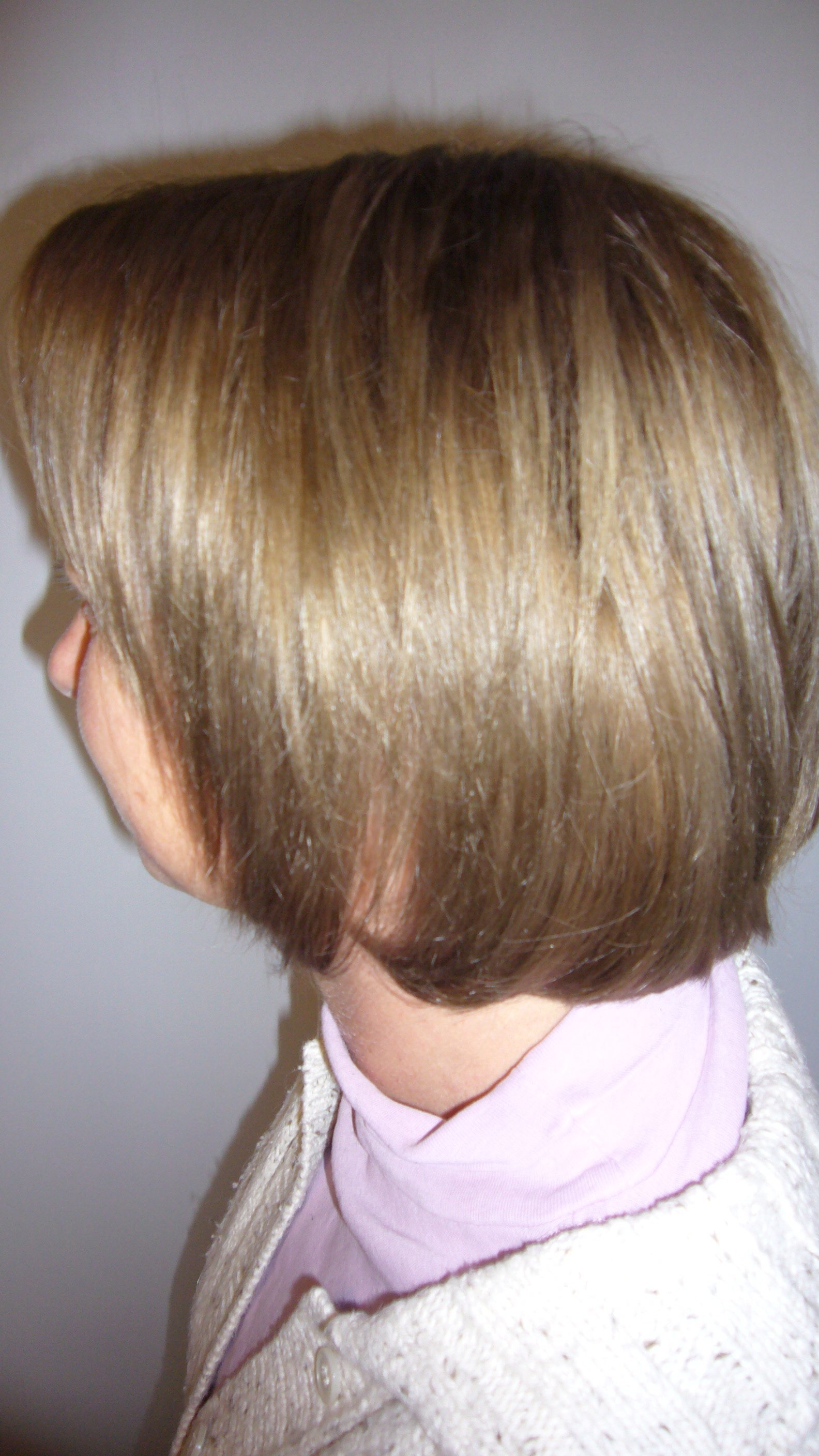 je vous mets sa couleur et sa coupe que j avais fais depuis et les photos d aujoudhui donc blond 7 plus brushing