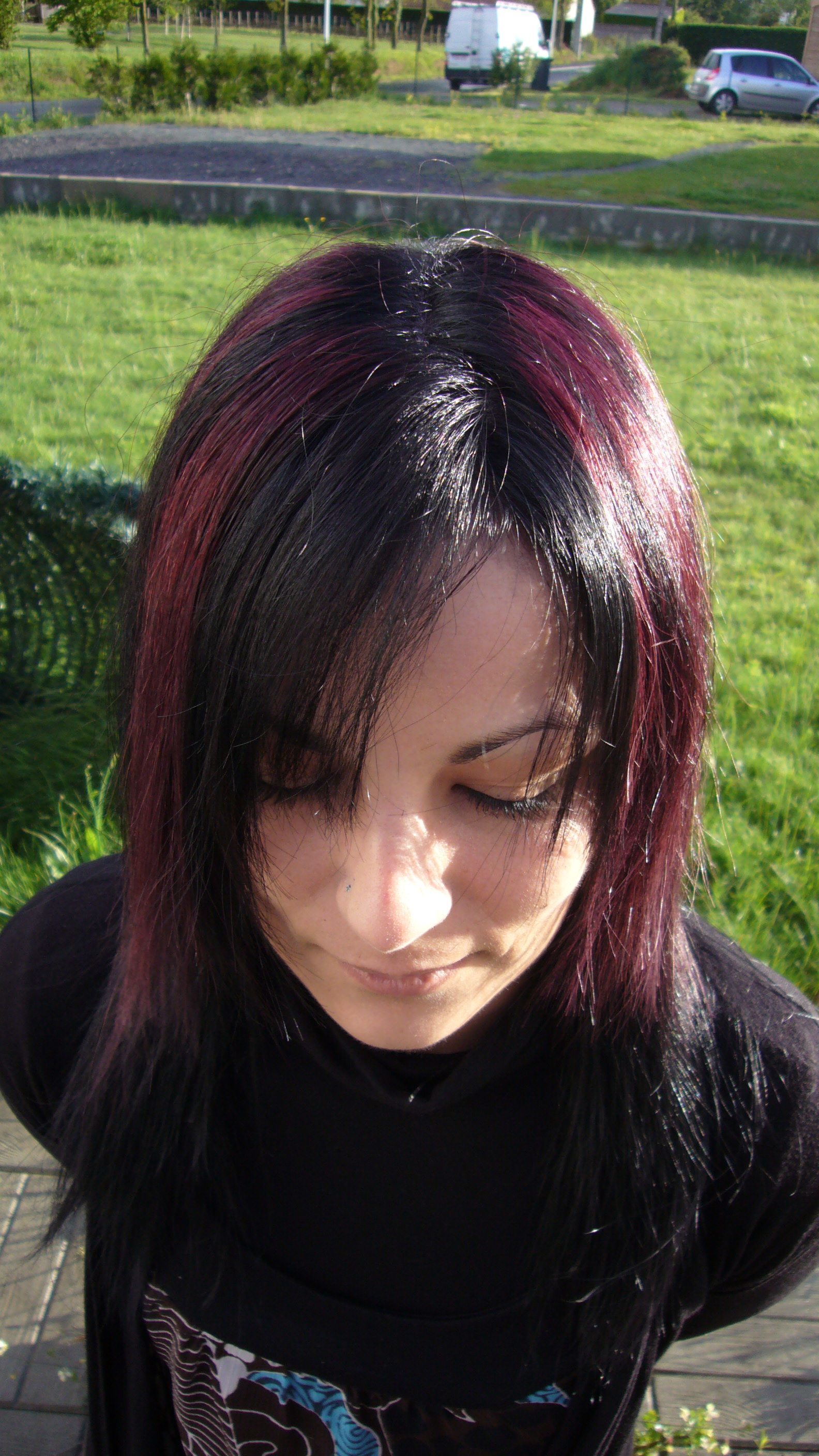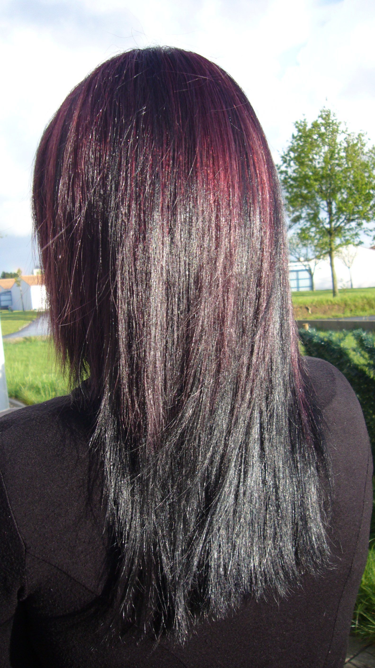 donc je lui ai fait meche chatain clair violine intense 5.20 plus coloration noir bleuté