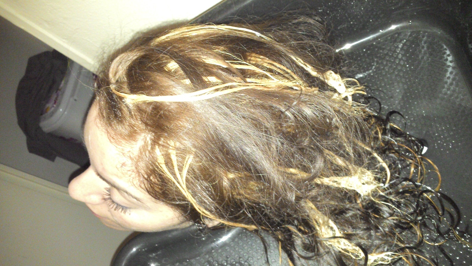 hier j'ai eu le plaisir de faire coupe (dégradé) sur cheveux longs + couleur + mèches... grand moment lol