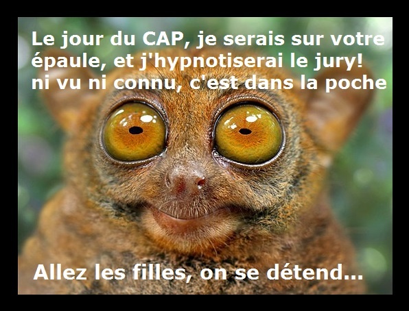 helene27 a dit:c'est un Tarsier Nocturne, animal dont le cerveau est plus petit que ses globes oculaires, cette photo me fait trop rire, c'est idiot je sais, on dirait mon ex mari quand la caissière est à son gout mdr