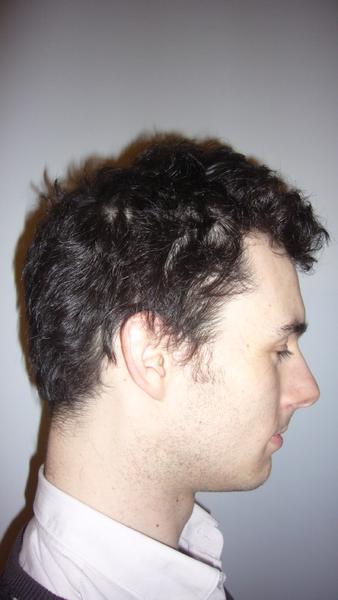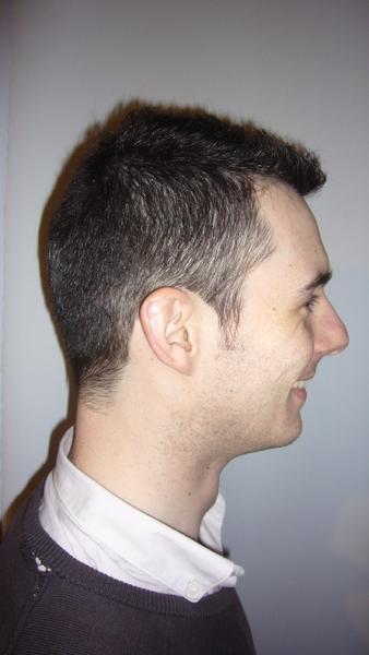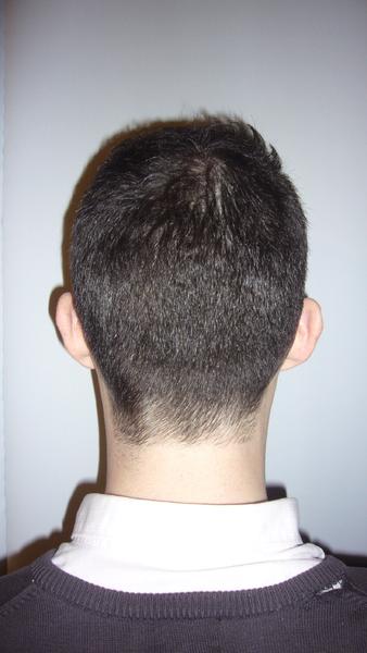 alors j'ai fais une coupe homme dégradé par contre j ai nettoyer le cou à l examen on doit pas le faire on doit laissé les cheveux dans l implantation naturel s est lui qui voulait que sa fasse propre derriere son coup donc j'ai mise au propre