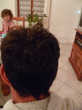 - samedi pm : coupe sur mon homme ! j'ai encore du mal a osé faire court dans la nuque...