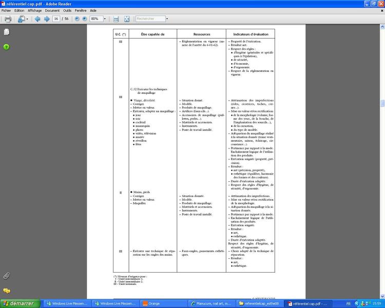 Alors pour ce qui est des ongles, il me semble que tu dois juste savoir poser une caspule. Je ne crois pas qu'il peuvent te demander la technique gel ou résine, mais là je n'en mettrai pas ma main à couper! Vous en pensez quoi les filles?