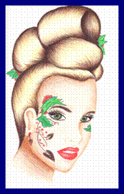 CAR VOUS ETES NOTE SUR L'ORIGINALITE LA CONCORDANCE DE COULEURS AU CHOIX DES MOTIF A L'ADAPTATION DU MOTIF SUR LE VISAGE DE LA PROPRETE DU STYLE ET DES OMBRES