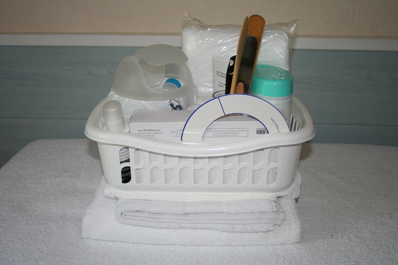 Arrivé la bas, j'ai donc commencé par déballer mon linge, l'installer, sortir mes produits soins visage, étaler sur ma desserte avec une serviette dessous, préparer mon plateau manucure que j'ai mis sur le dernier étage de ma desserte, et laissé mon trolley sous ma table, en deux partie, la grande partie (dernier compartiment) et comme celui ci n'avait pas de couvercle, j'ai laissé le matériel divers (rallonge, boîte de kleenex et cotons supplémentaire...) accessible au cas où et la deuxième partie ce sont les trois autres petits compartiments empilés les uns aux autres cela faisait très propre.