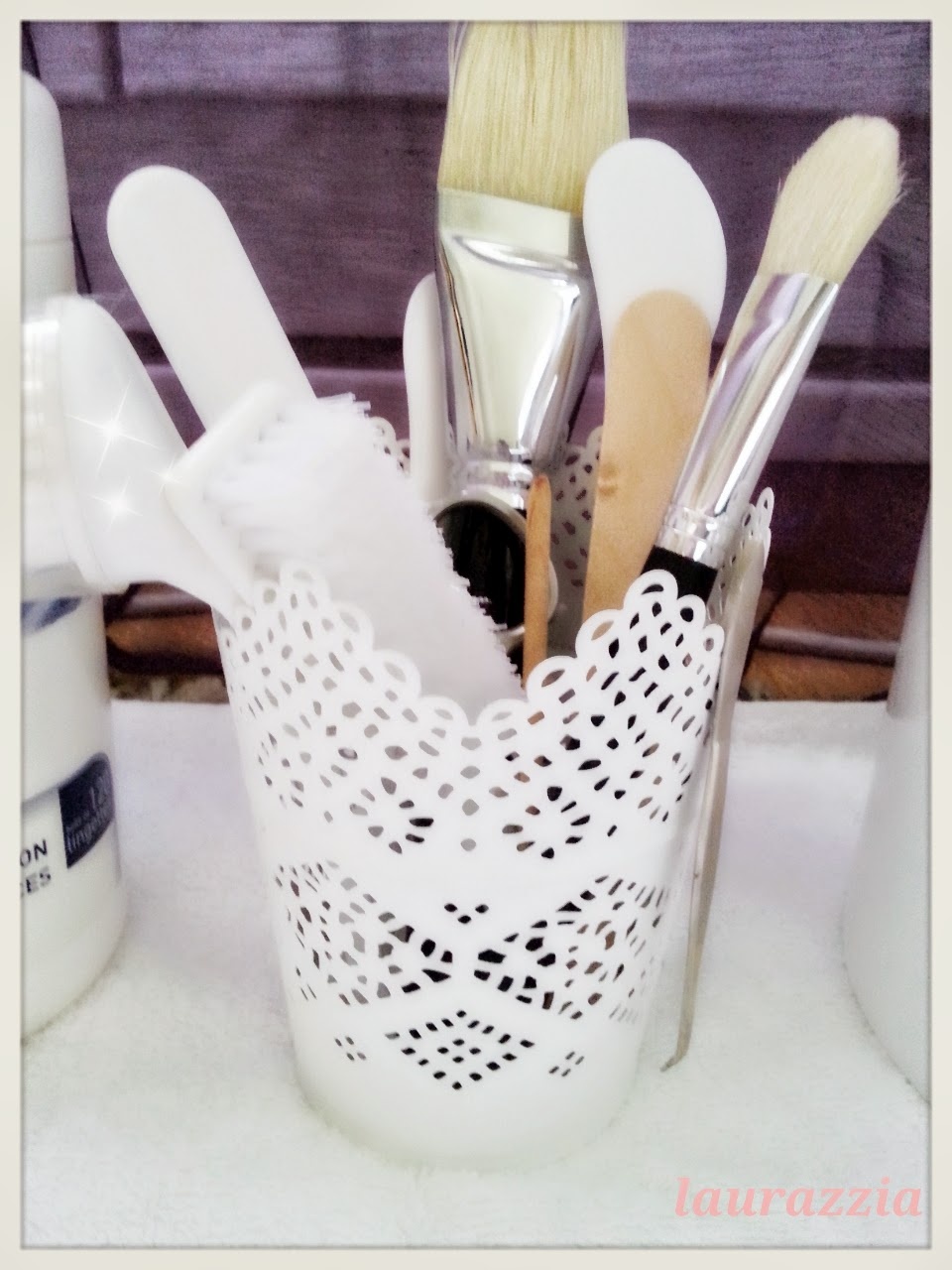 Tu peut mettre dans des petites boîtes en plastique le vernis ,,matériel a epilation cela ne prend pas de place