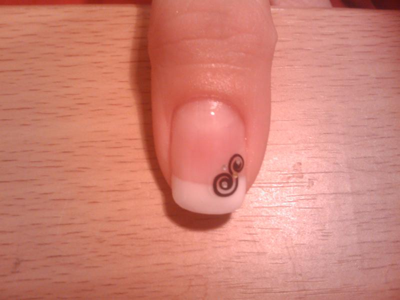 J'ai un peu de mal à travailler au chablon, je met trop de french et de gel, de plus j'oublie tjs de retourner la main pour le séchage après avoir enlevé le chablon. Bref ça viendra. Mais je regrette pas le chablon. C'est une bonne technique.
