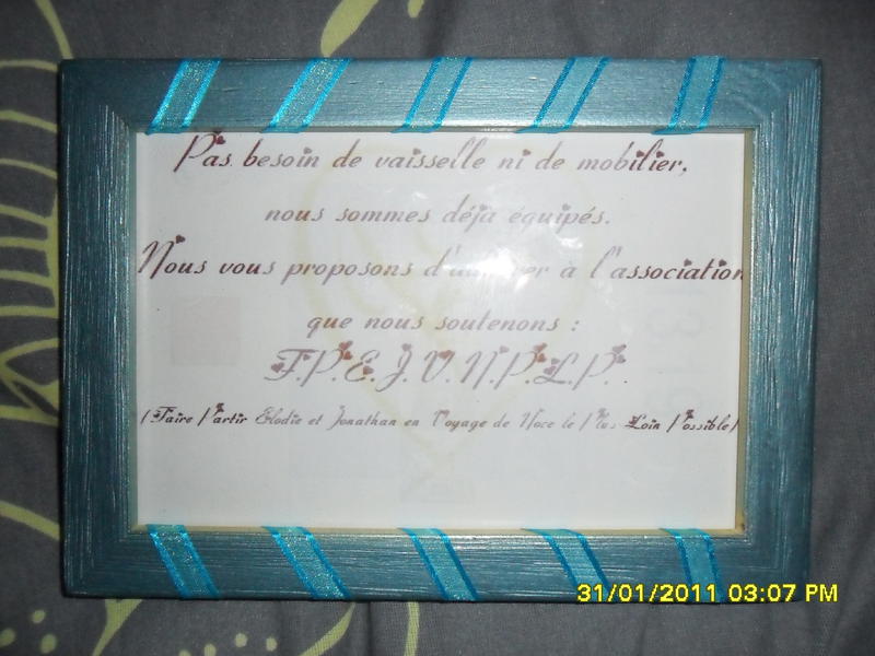 Pour le plan de table, j'attends d'avoir les réponses définitives... et je sens que ça ne va pas être le plus simple ... mais je me dis que de toute façon c'est difficile de faire plaisir à tt le monde!^^