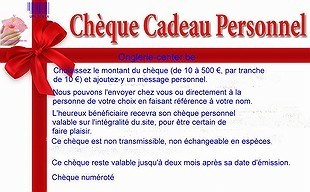 A l'approche des fêtes et à la demande de beaucoup d'entre vous, nous avons ajouter la rubrique "Chèques cadeaux" dans notre boutique en ligne.