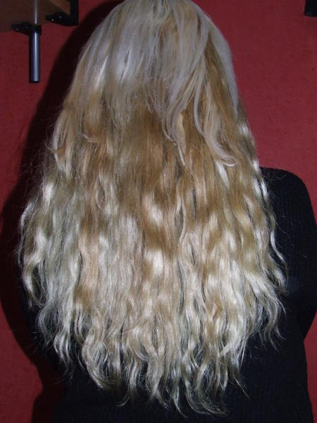 Voilà fini le blond très très clair je viens de me faire du blond foncé et j'avoue que j'adore , j''en ai profité pour teinter mes extensions en même temps,l'accro que je suis etait obligée mdr ,j'allais pas attendre de rentrer un kit de ma couleur non?!!!!!!